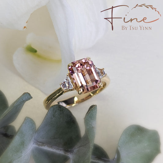 YG Sunset Tourmaline Ring with Trapezoid White Diamonds