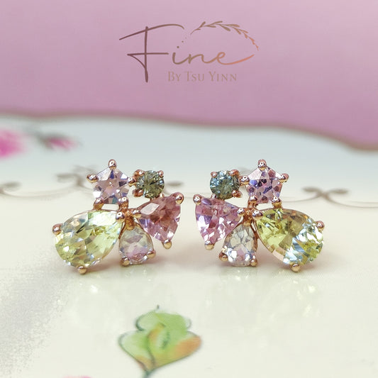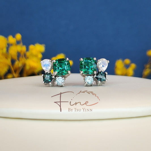 RG Cluster Chrysoberyl, Moonstone, Tourmaline, Spinel and Sapphire Studs