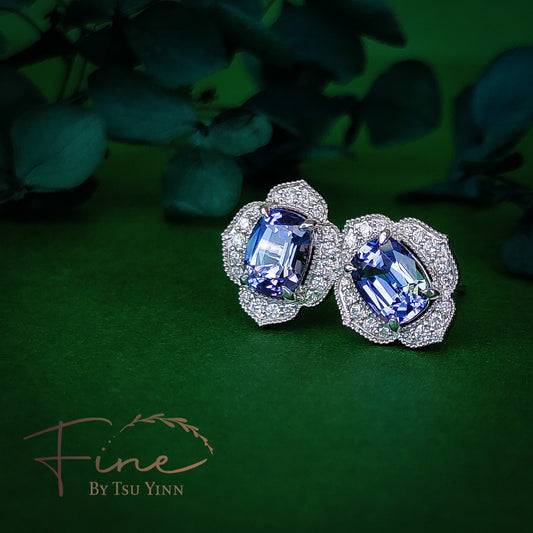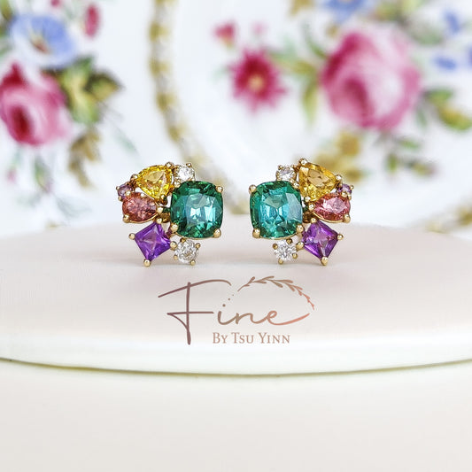YG Cluster Green Tourmalines, Sapphires, Amethyst, Diamond Studs