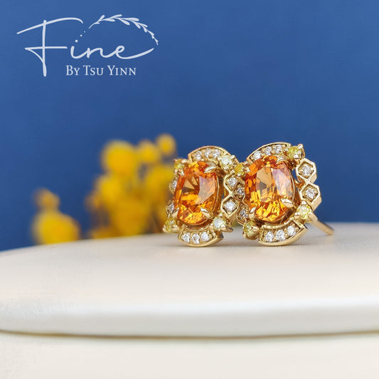 YG Spessartite Garnet and Diamond Long Hook Earrings
