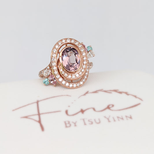 RG FBTY Loop Halo Ring with Violet Grey Spinel, Diamonds and Paraiba Tourmalines