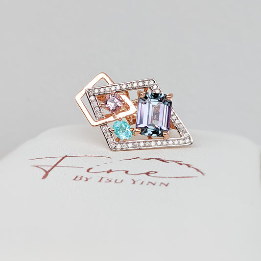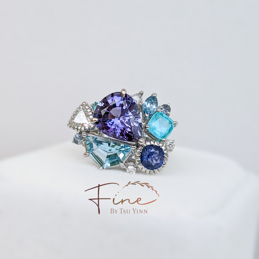 RG WG Tanzanite Paraiba Tourmaline Spinel Diamond Ring