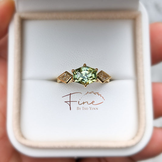 YG Unheated Hexagon Parti Sapphire and Kite Diamonds Ring