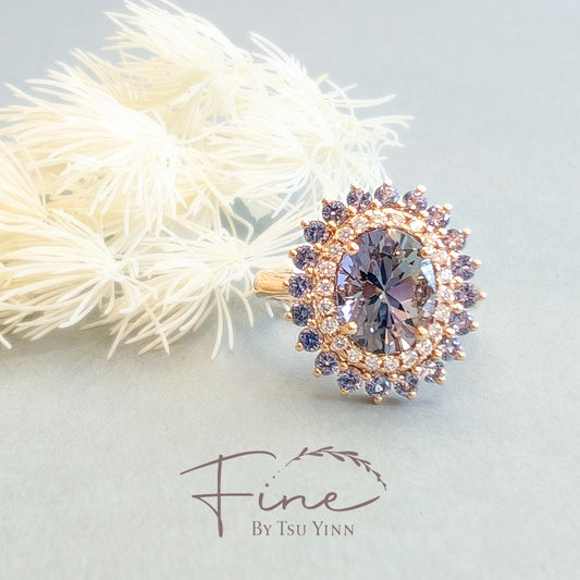 RG Elizabeth Ring with Tanzanite, White Diamonds and Blue Spinels
