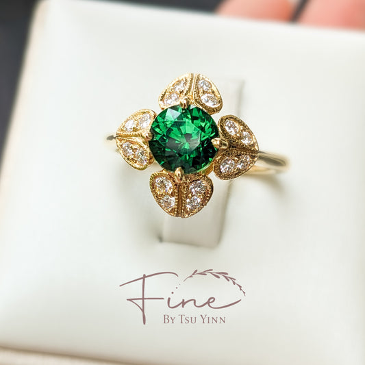 Asscher Cut Green Tourmaline Diamond Halo Ring