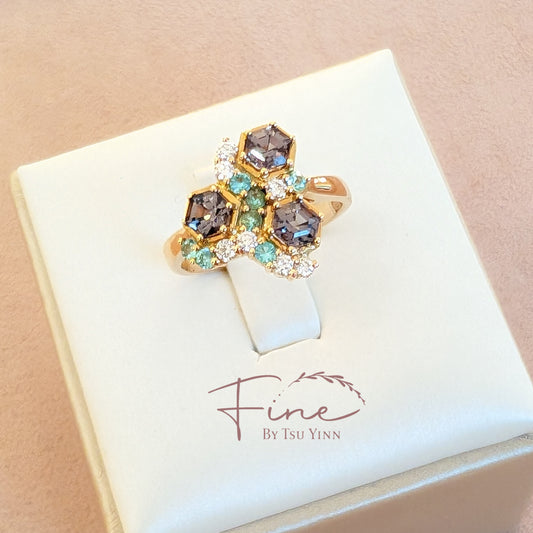 RG Honeycomb Spinels, Diamonds and Paraiba Tourmaline Ring