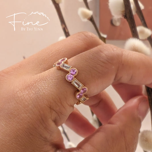 RG Mogok Pink Spinel and Paraiba Tourmaline Interlocking Ribbons Ring