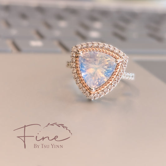 RG WG Faceted Trillion Moonstone with Twisted Rope and Diamond Halo