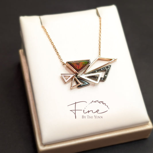 Opal, Black Diamonds, Mother of Pearl and Black Onyx Necklace