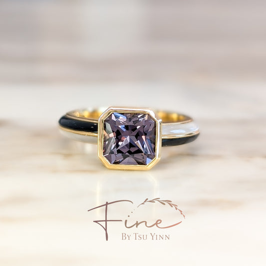 Violet Spinel, Black Onyx and Mother of Pearl Ring