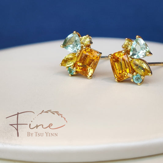 YG Spessartite Garnet, Blue Spinels, Emerald Studs