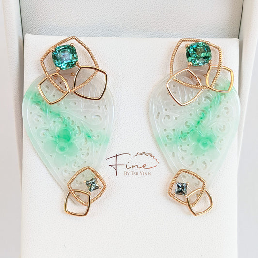 RG Lagoon Tourmalines Multi-Wear Carved Jade Earrings