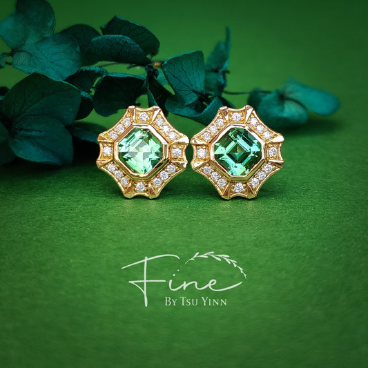 Asscher Cut Green Tourmaline Diamond Halo Ring