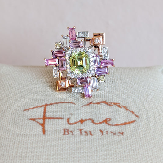 FBTY Labyrinth Ring in Chrysoberyl, Sapphires and Diamonds