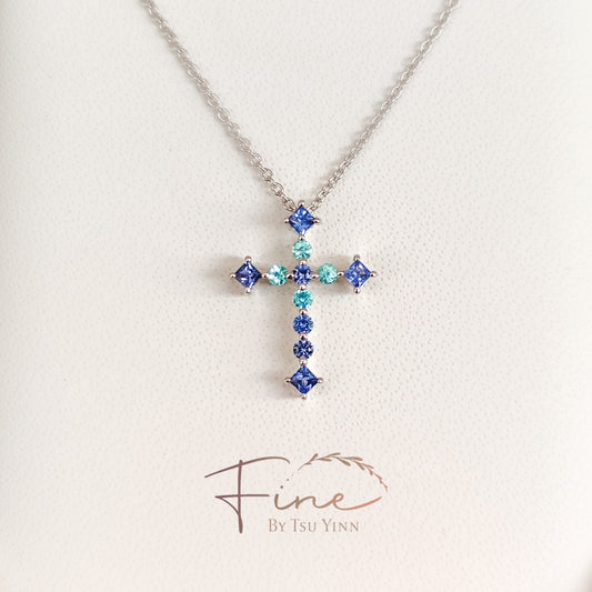 FBTY Princess Cross Necklace - Blue Sapphire and Paraiba Tourmalines