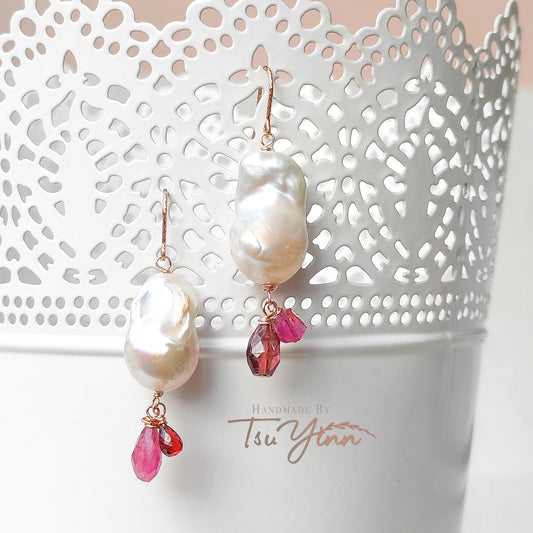 Baroque Pearls with Detachable Dangles in Red/Pink Hues