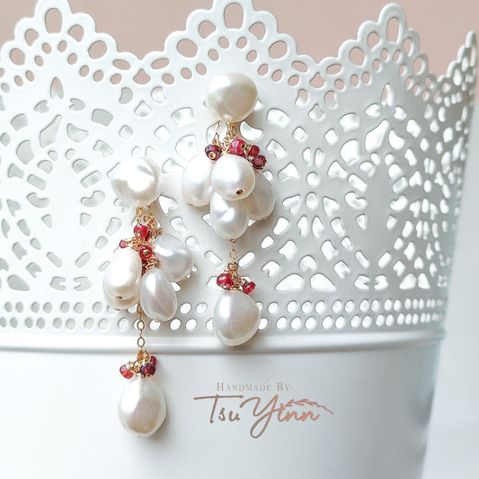Multiwear Keshi Pearl Baubles Earrings Garnet & Dyed Ruby in YG