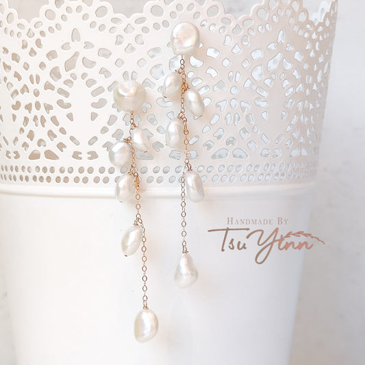 Multiwear Keshi Pearl Baubles Earrings Plain in RG (B)
