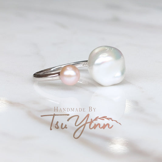Keshi and Pink Pearl Open Ring