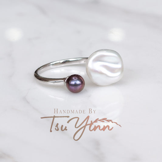 Keshi and Peacock Pearl Open Ring