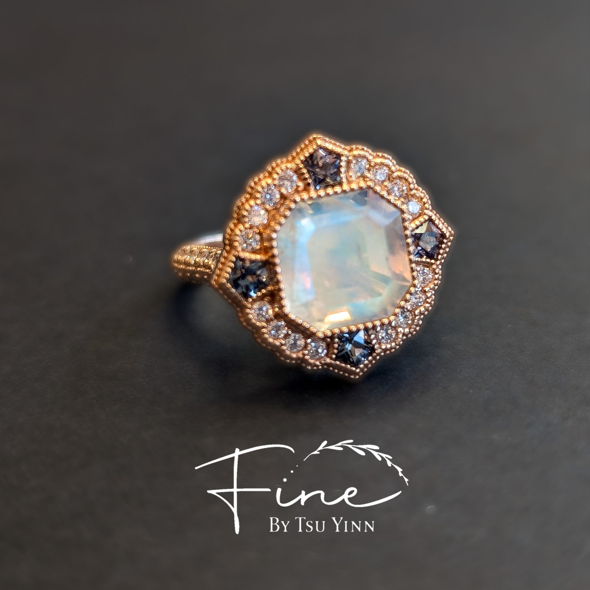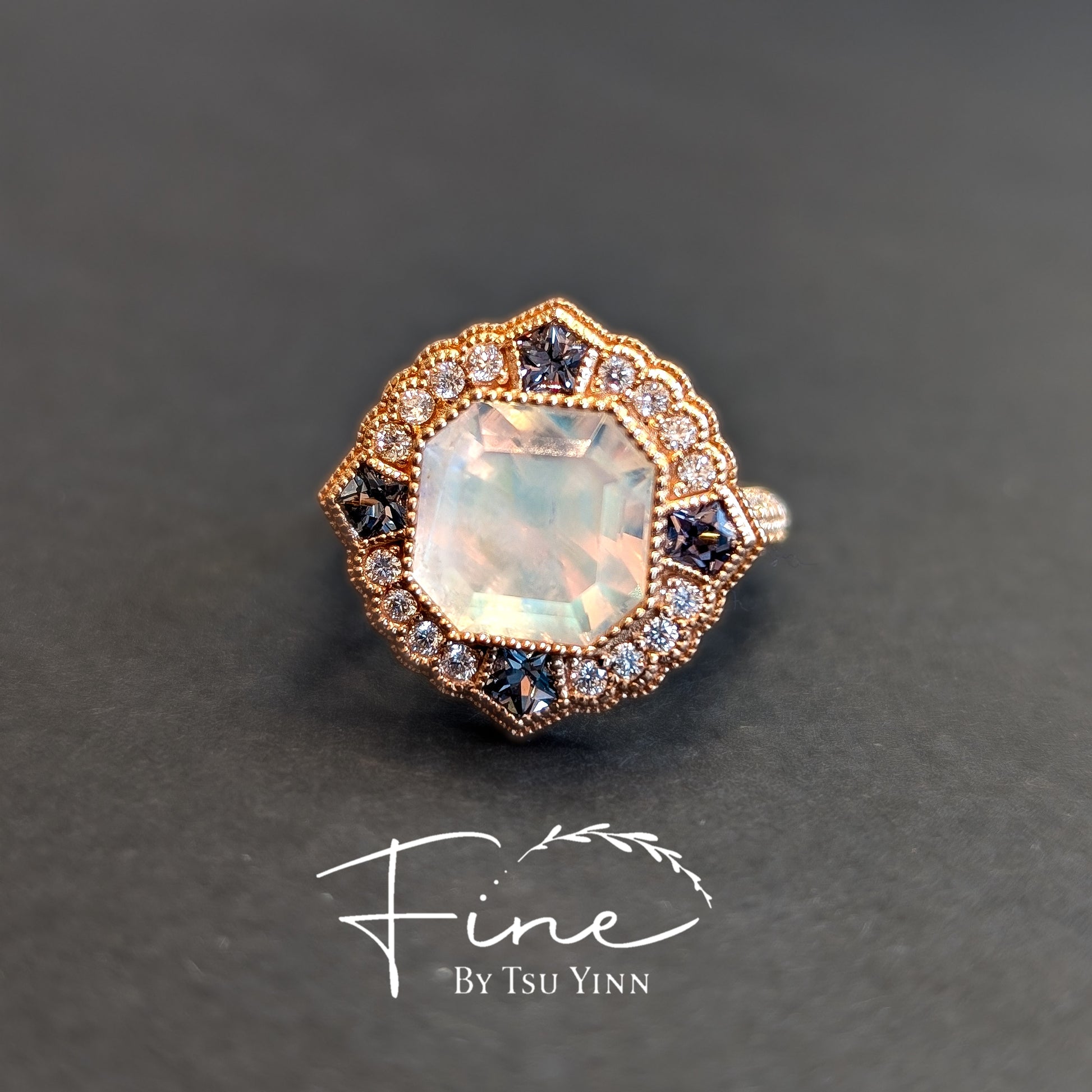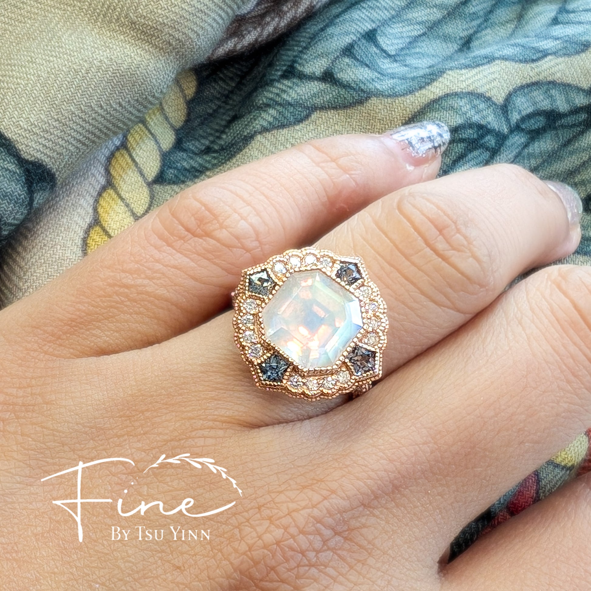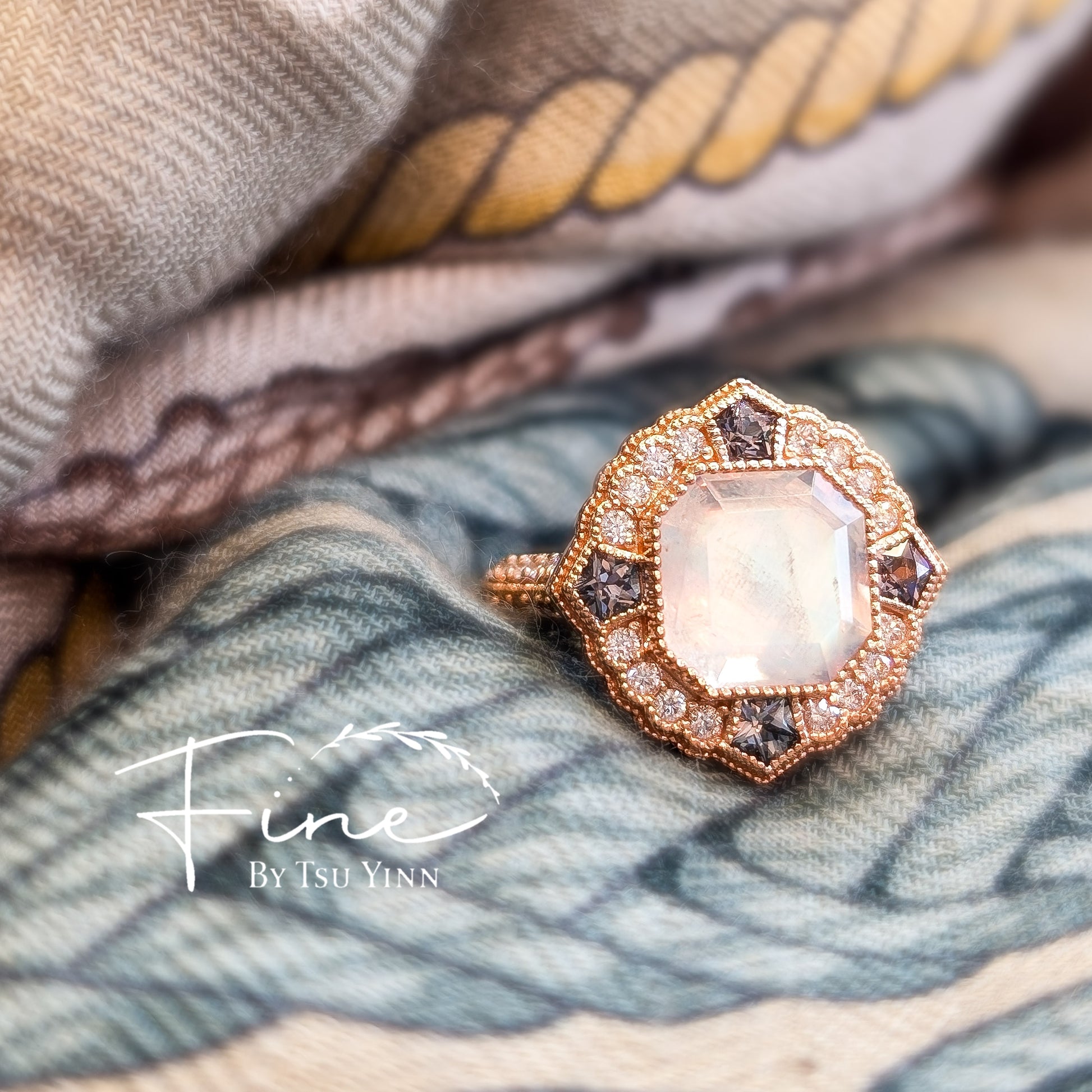 18K Rose Gold. Currently in ring size HK 13. Complimentary ring resize provided if needed.