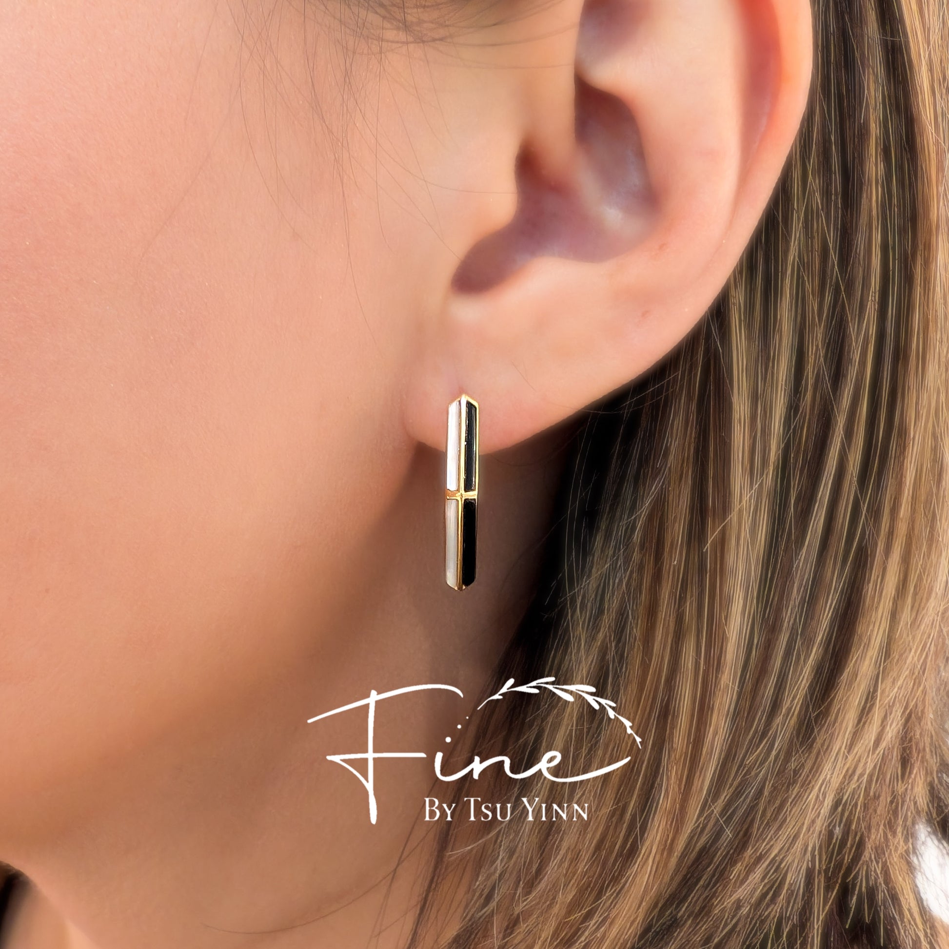 Black Onyx and Mother of Pearl Huggies