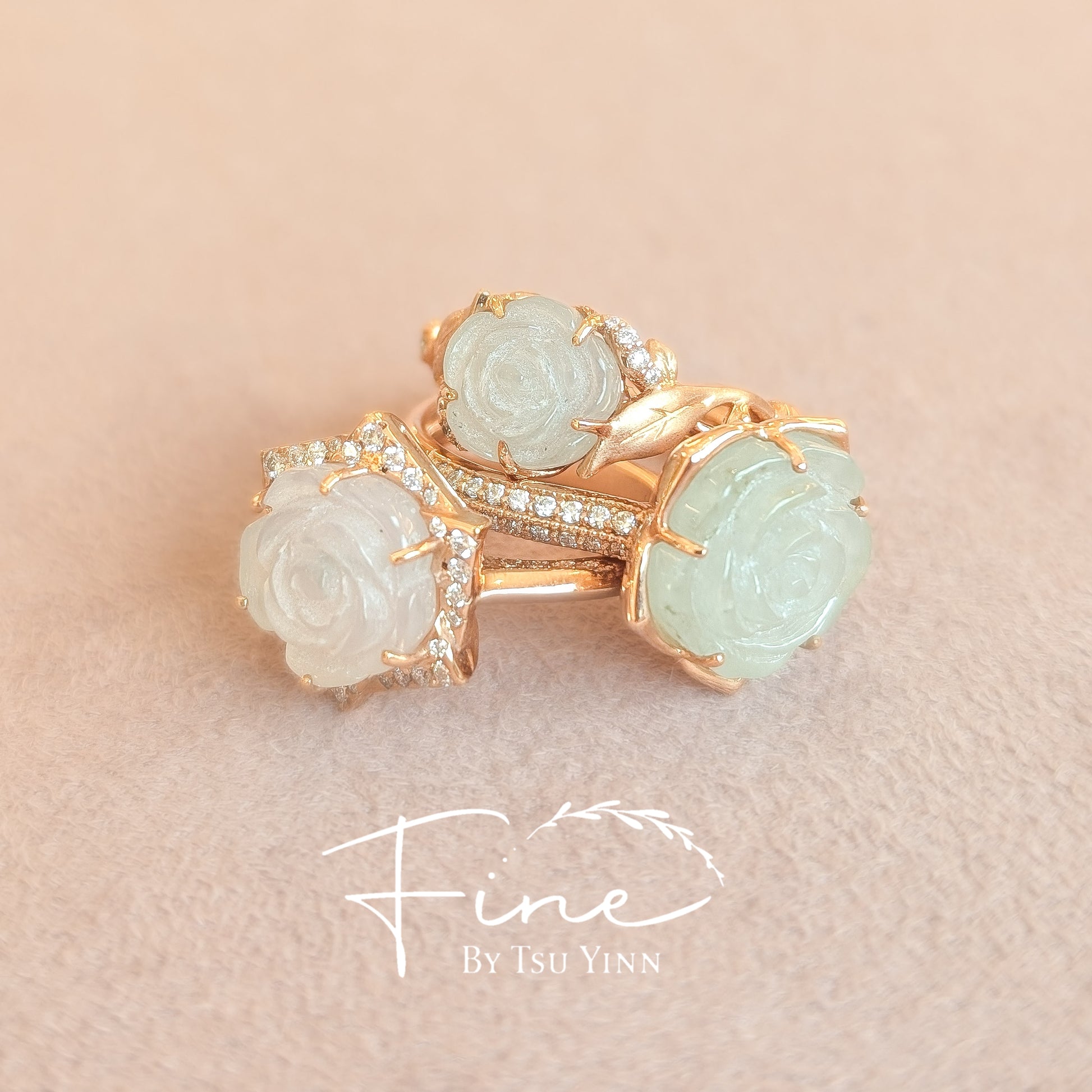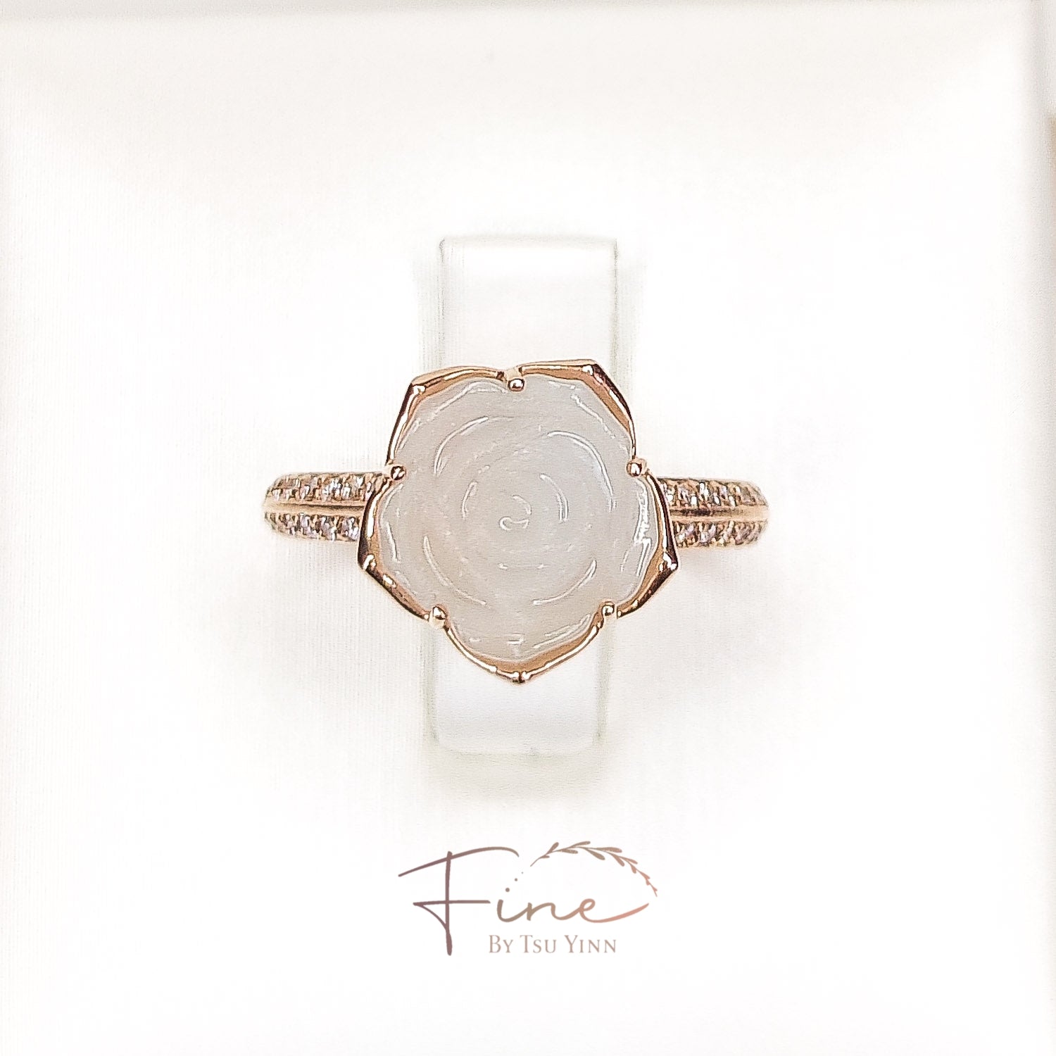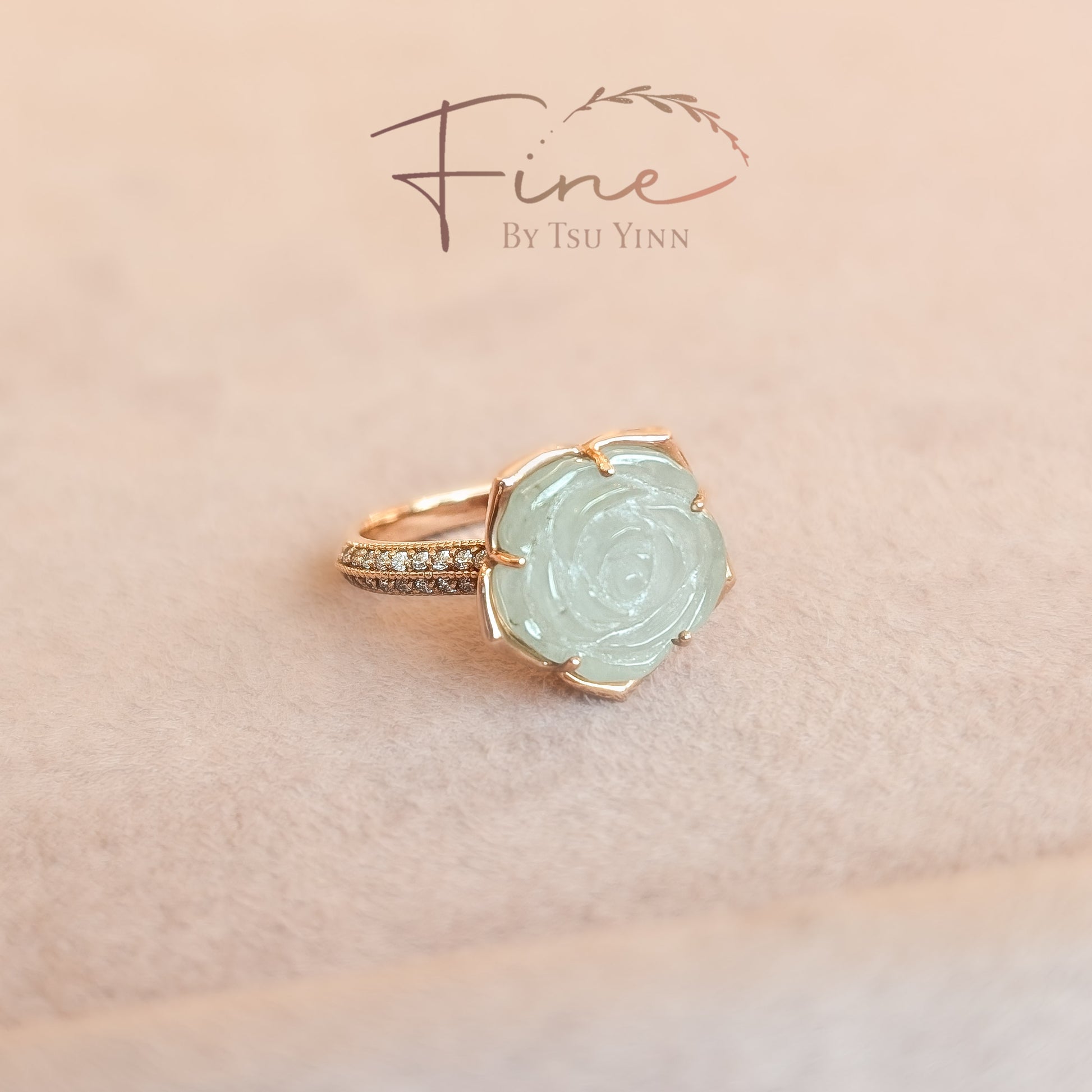 FBTY Carved Rose Jadeite Ring with Diamond Knife Band (half)