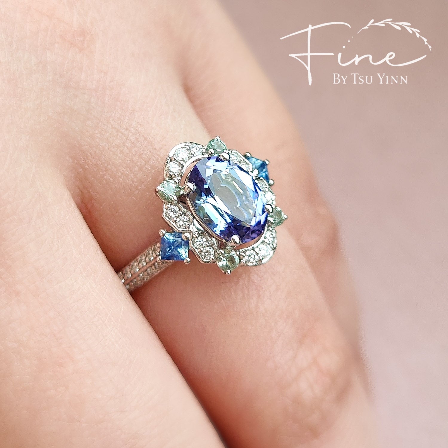FBTY Kyra Ring in Tanzanite, Green Sapphires, Blue Sapphires and Diamonds