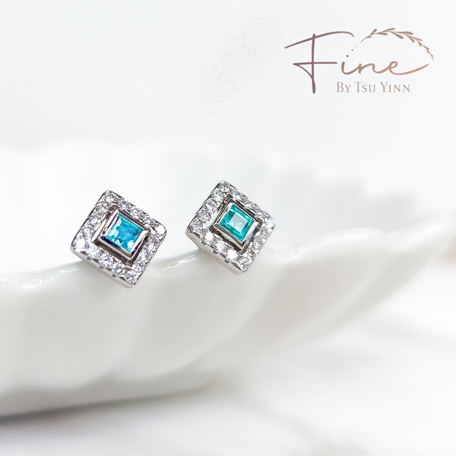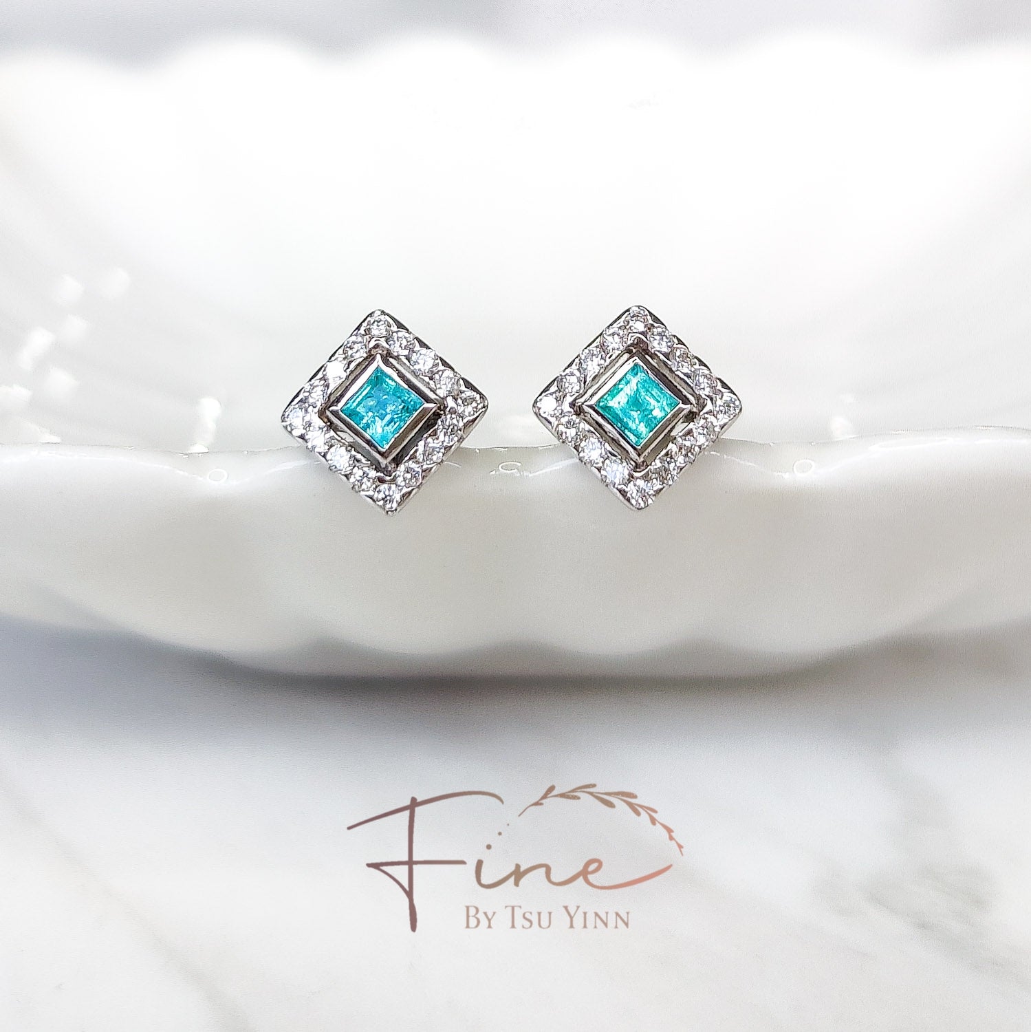 FBTY Petite Studs: Paraiba Tourmaline and Diamond Halo