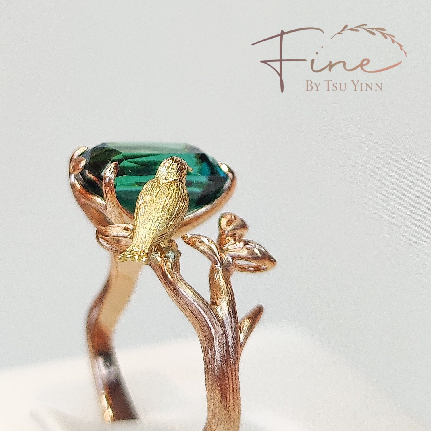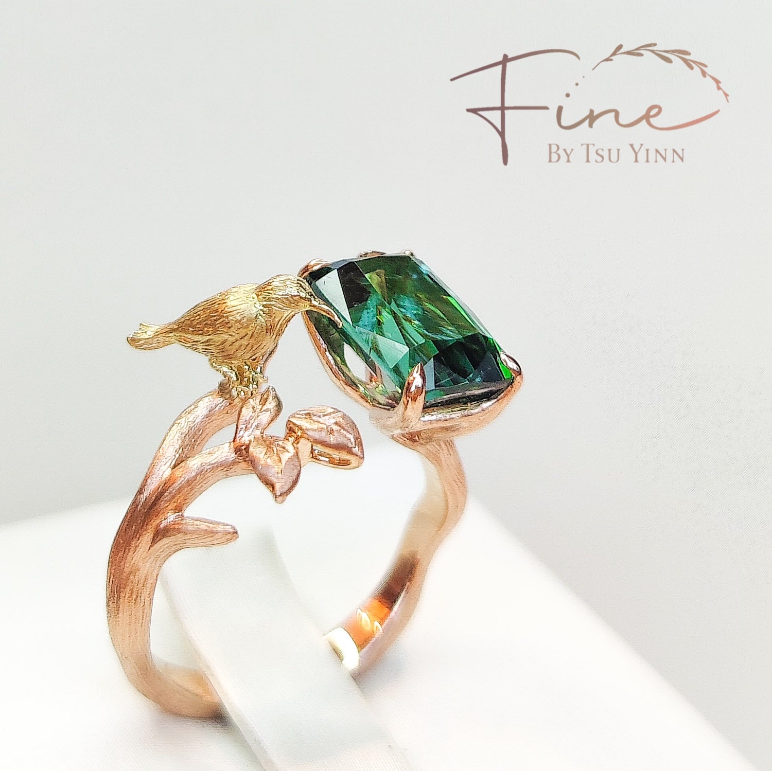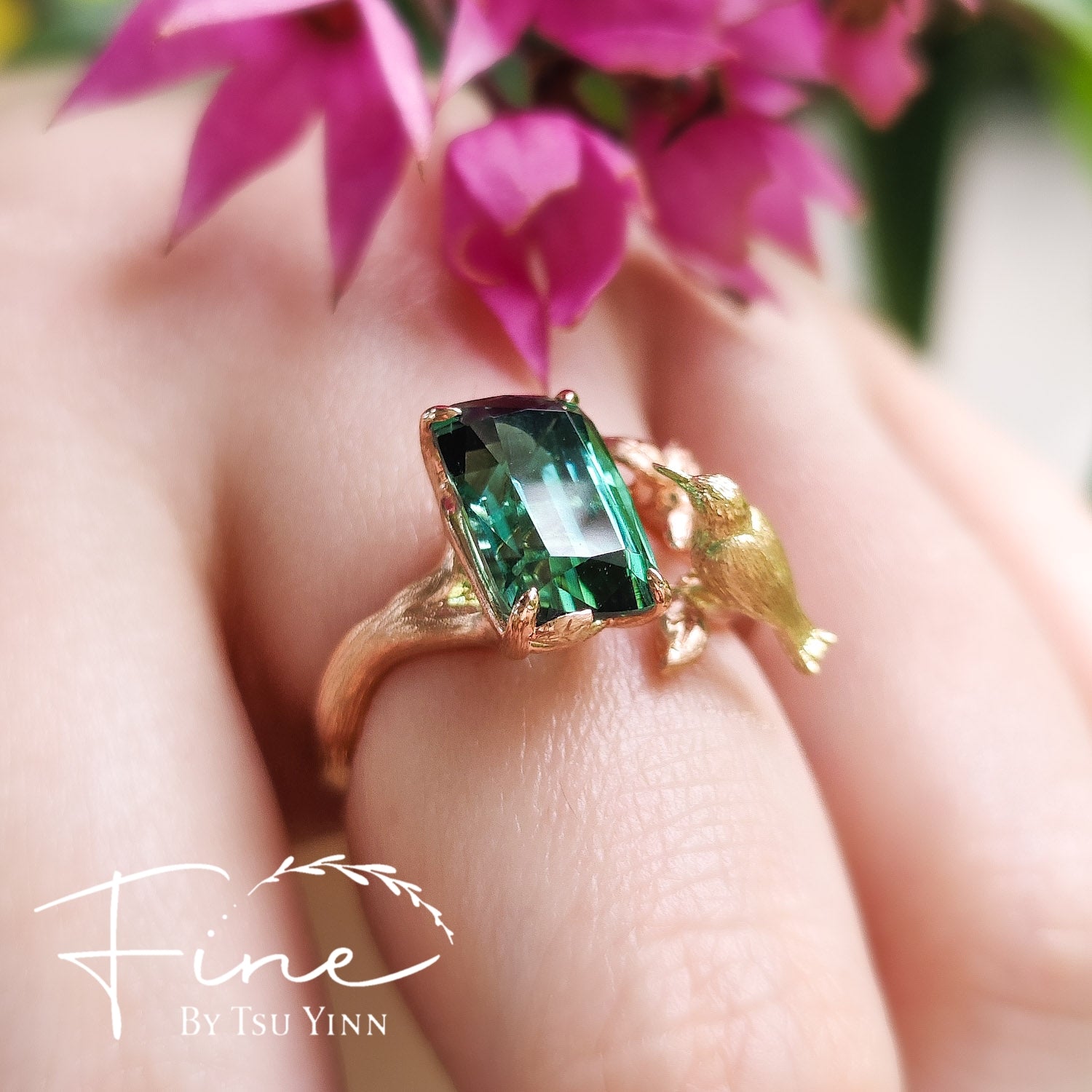 FBTY Sunbird Ring with Bluish-Green Tourmaline