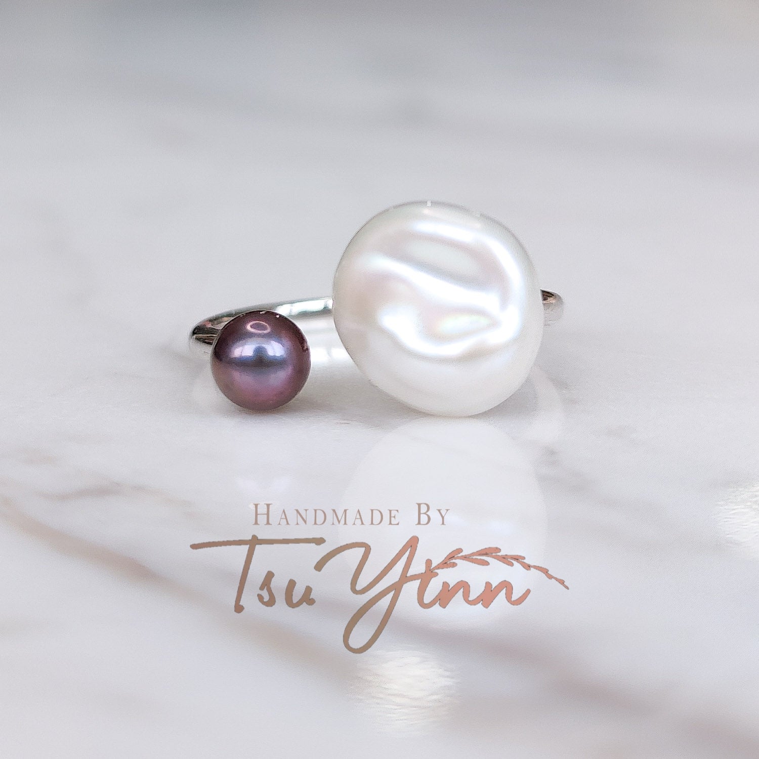 - Keshi pearl (10-10.5mm) and round peacock freshwater pearl (4-5mm)