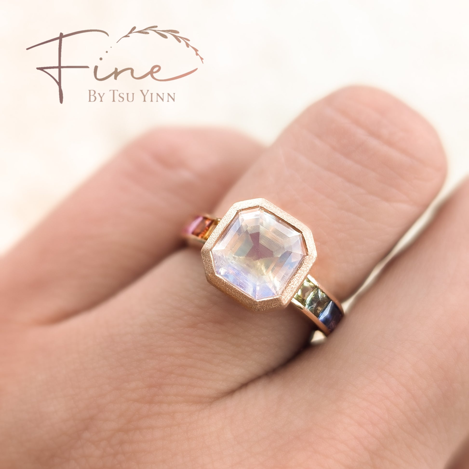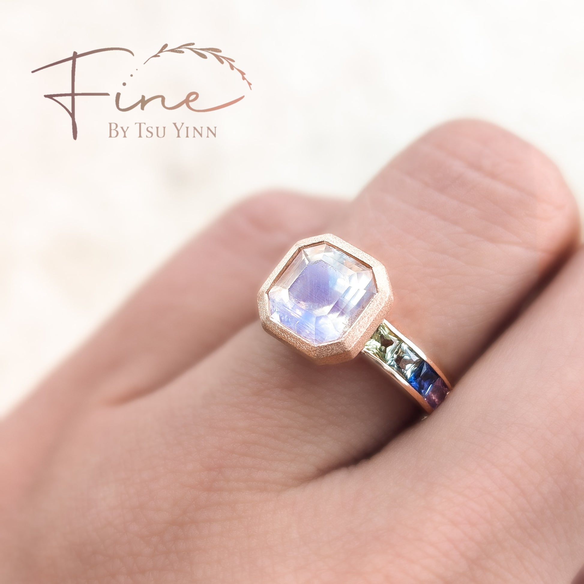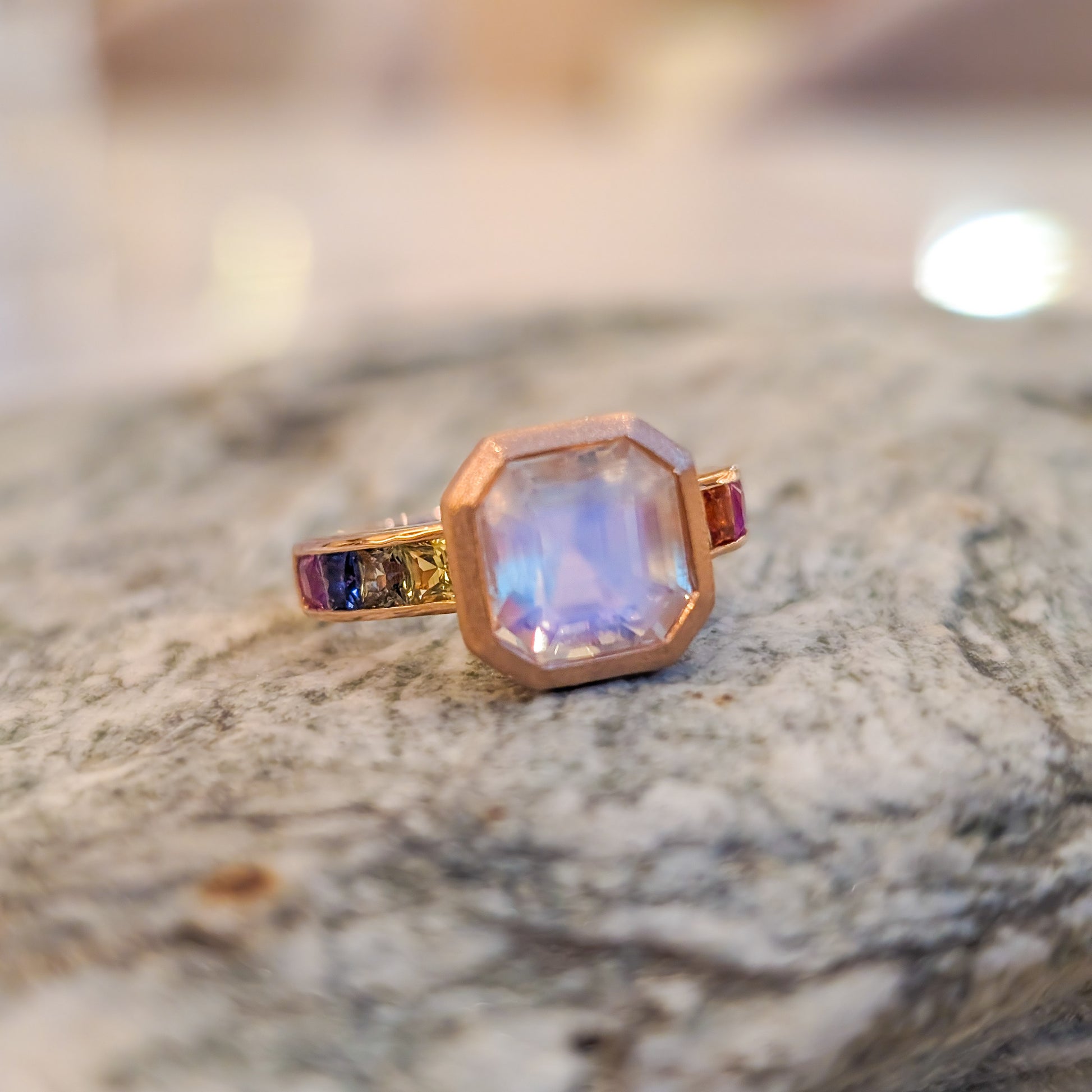 Moonstone and Rainbow Sapphire Ring