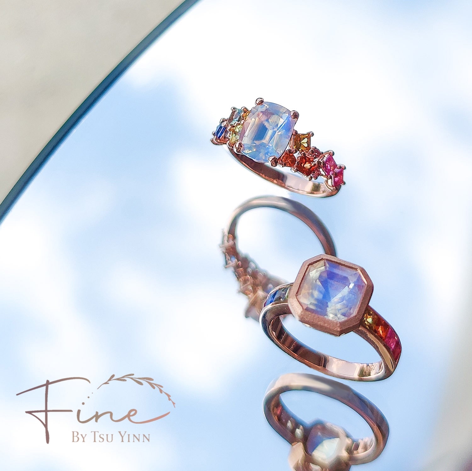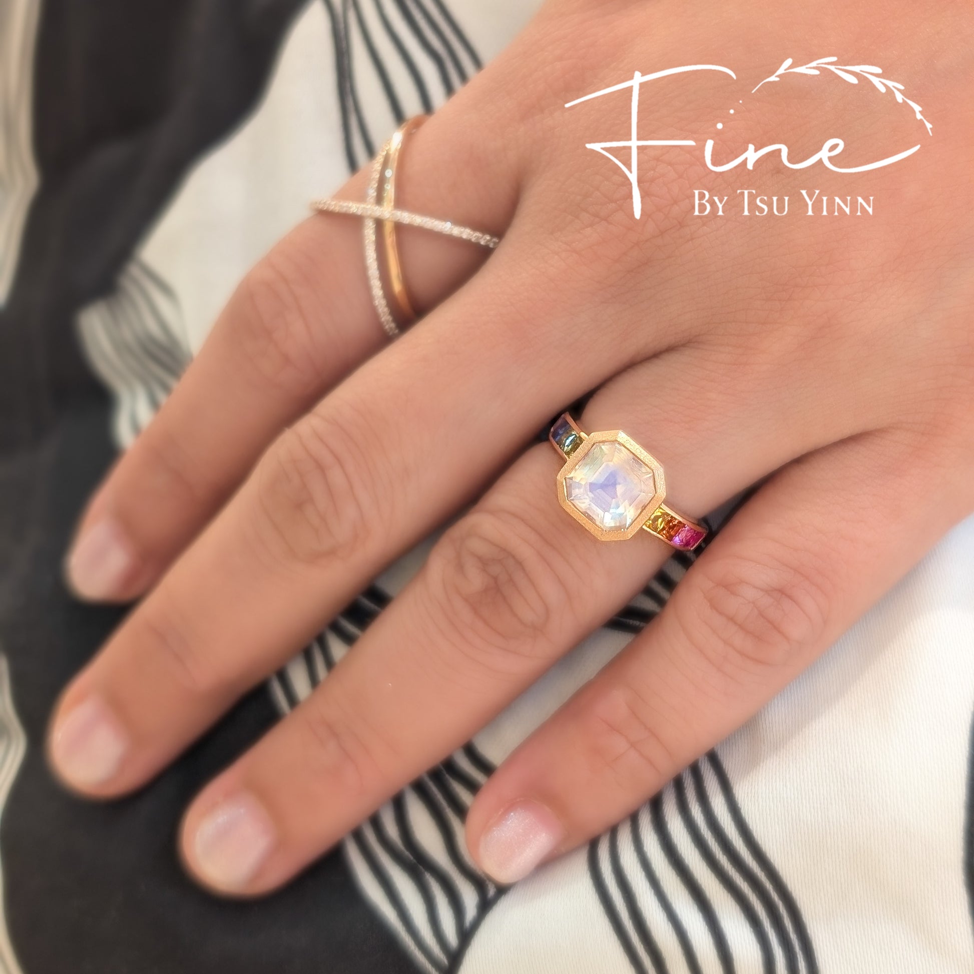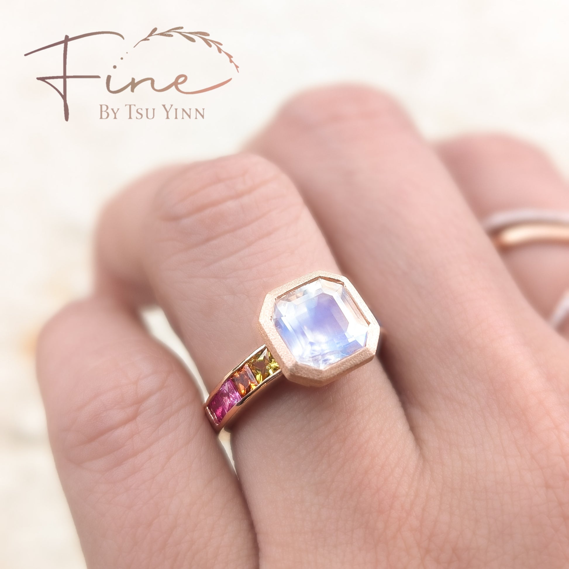 Moonstone and Rainbow Sapphire Ring