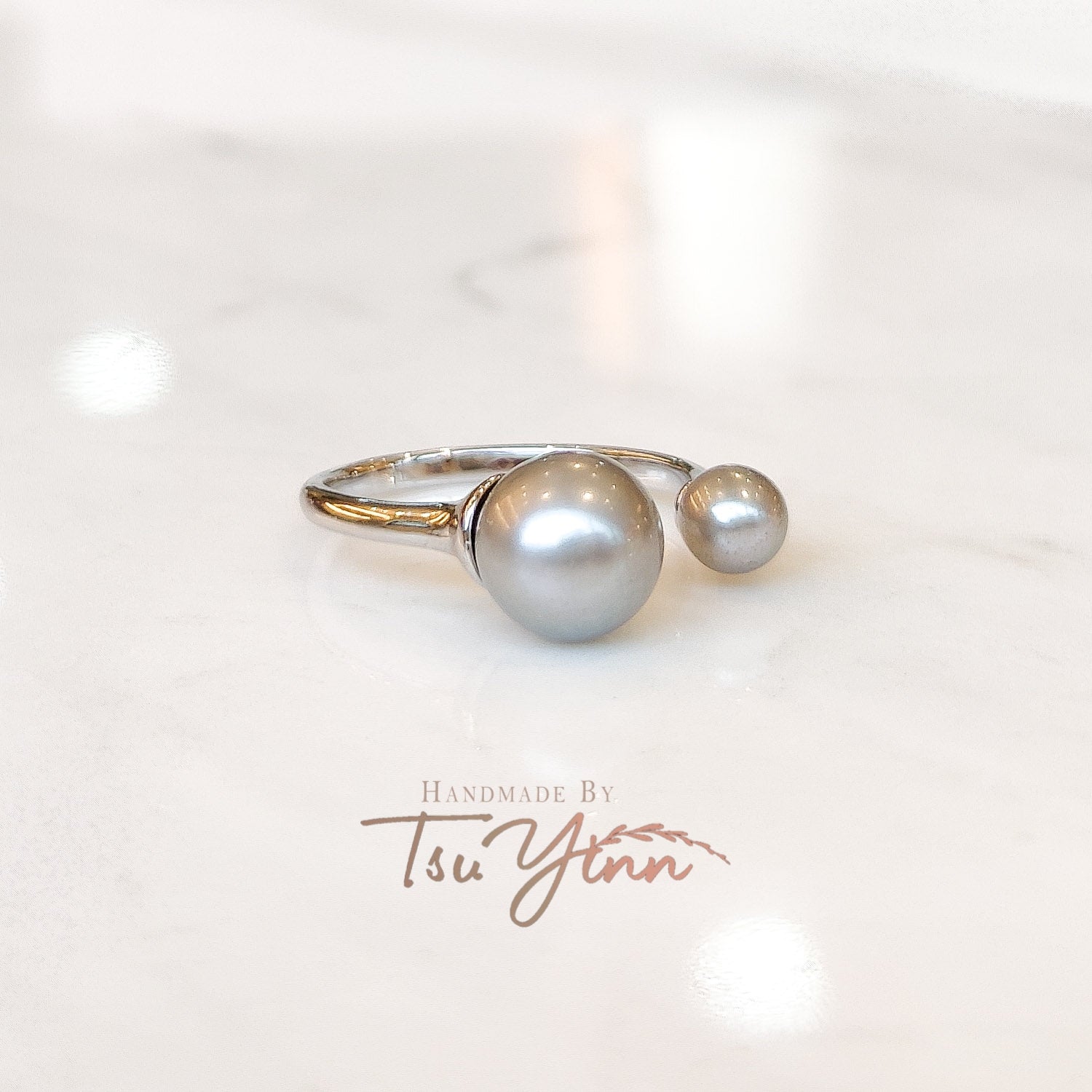 - Grey freshwater pearls (8mm & 5mm) open ring set in 925 silver