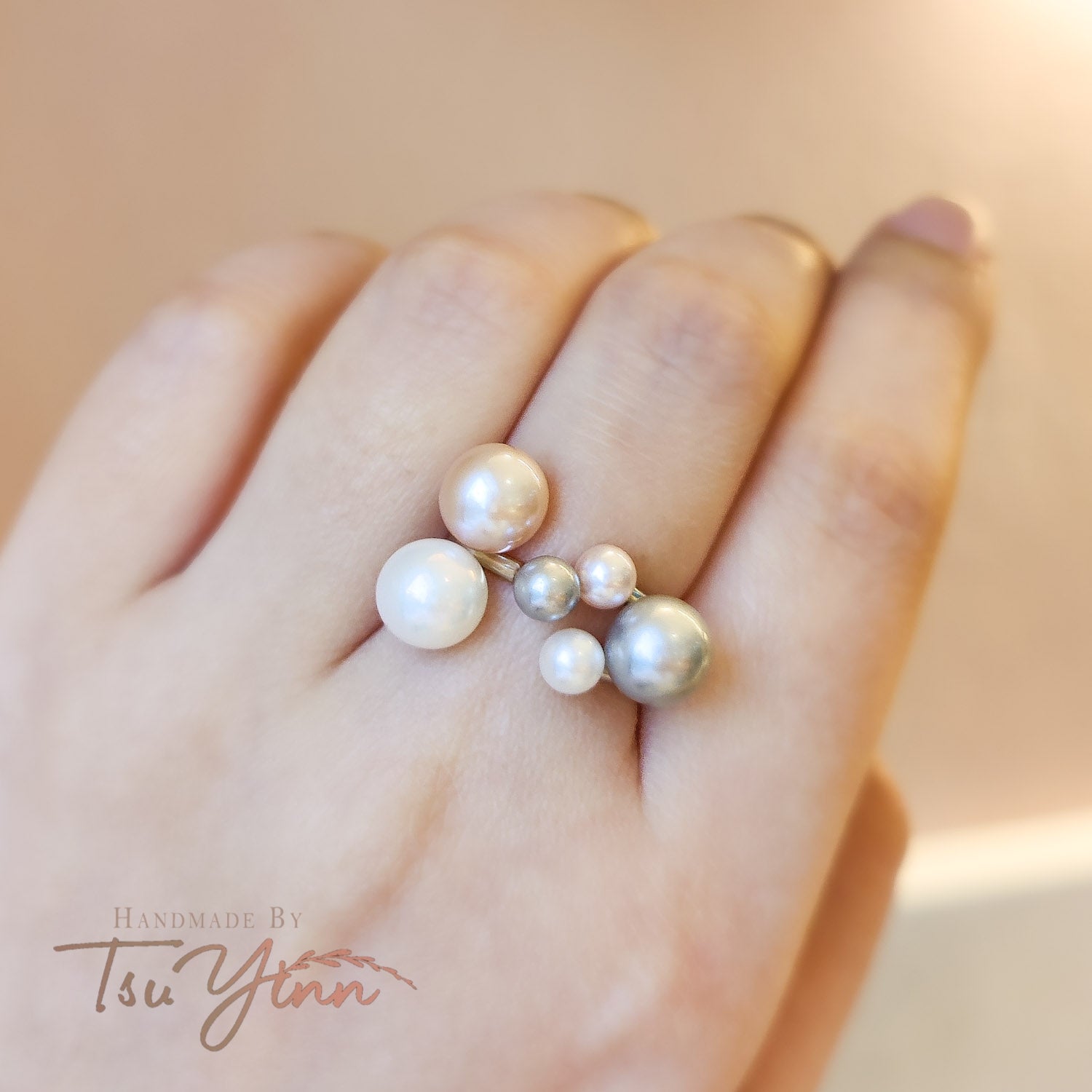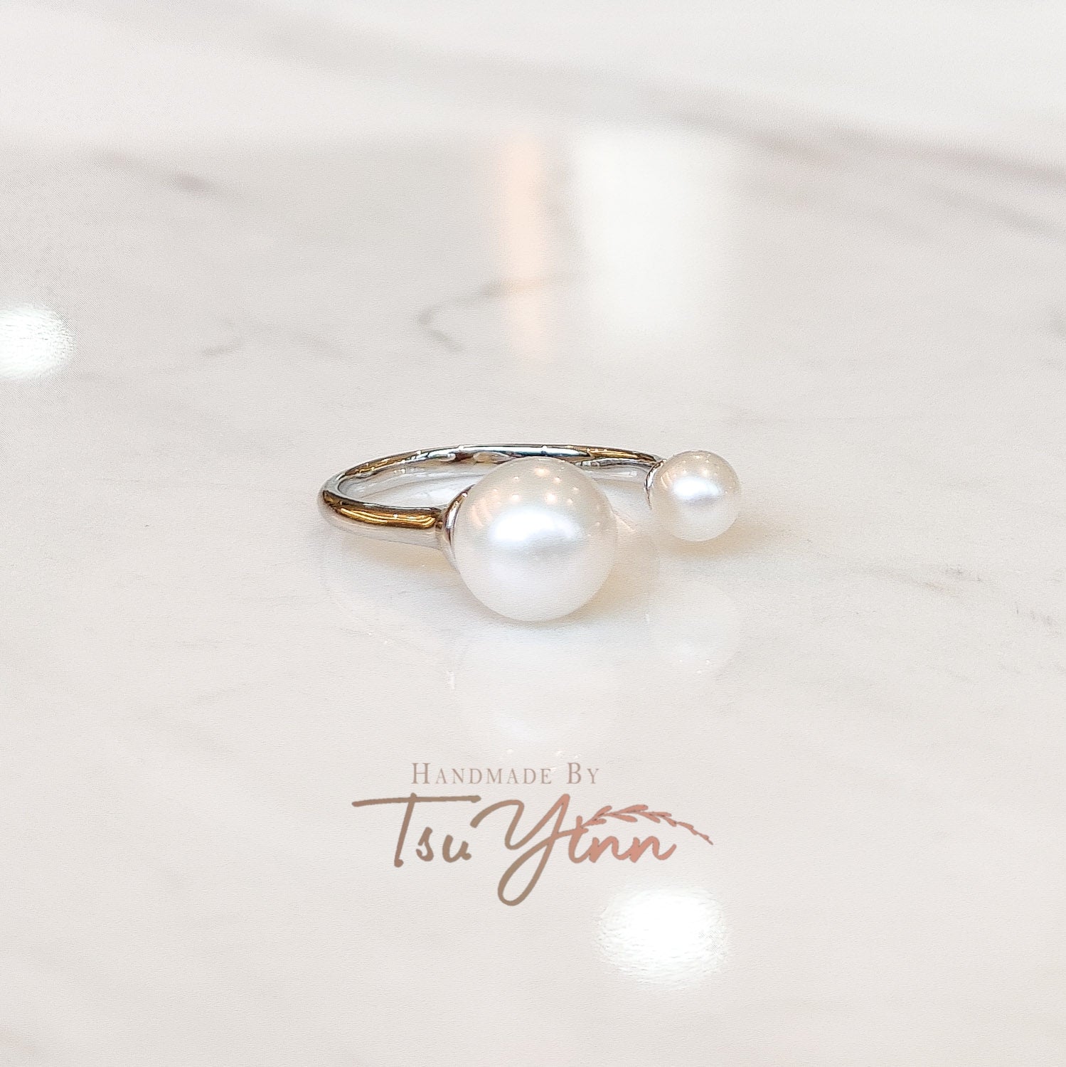 - White freshwater pearls (8mm & 5mm) open ring set in 925 silver