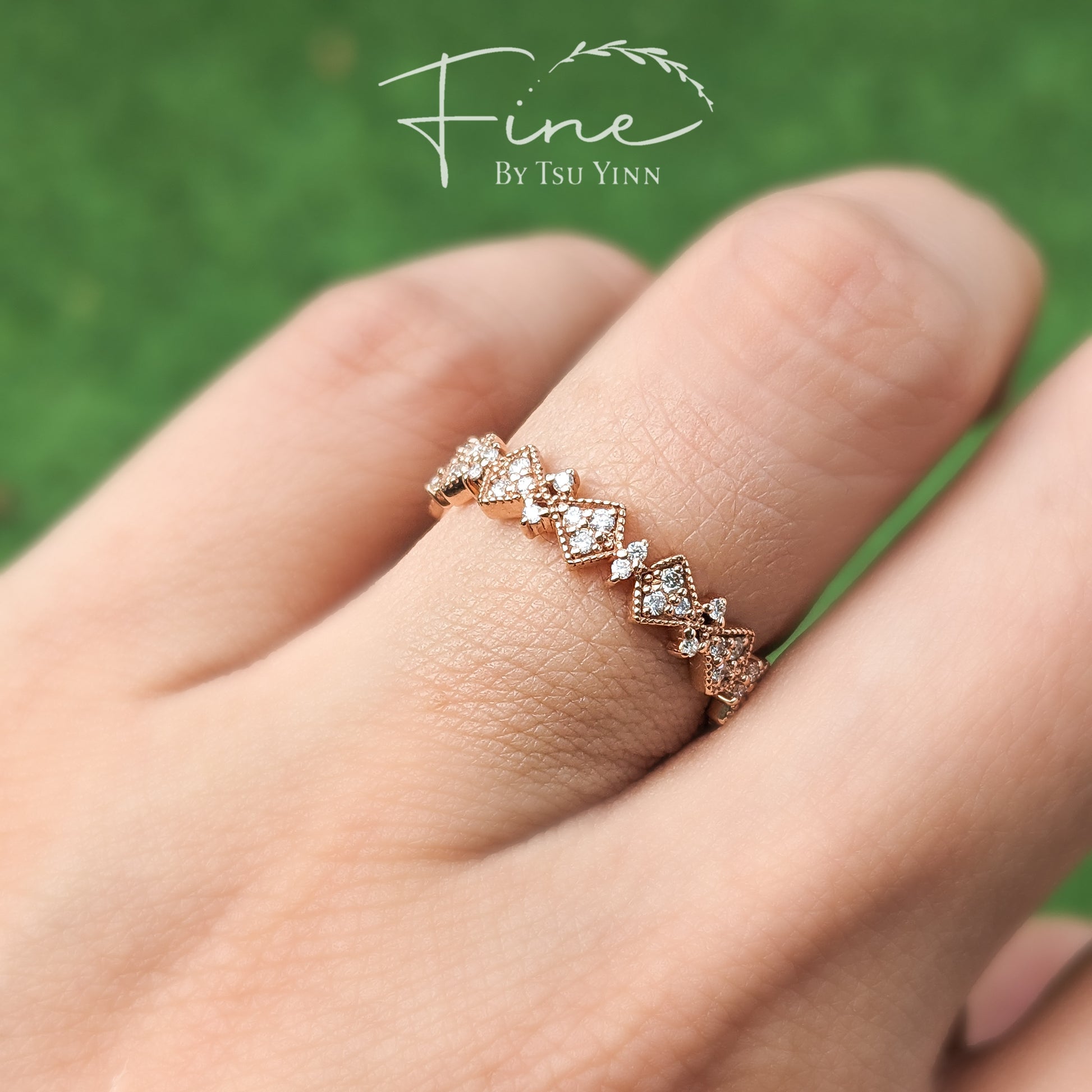 This is an eternity band that goes all the way around and is available for Pre-Order. Half band version also available.