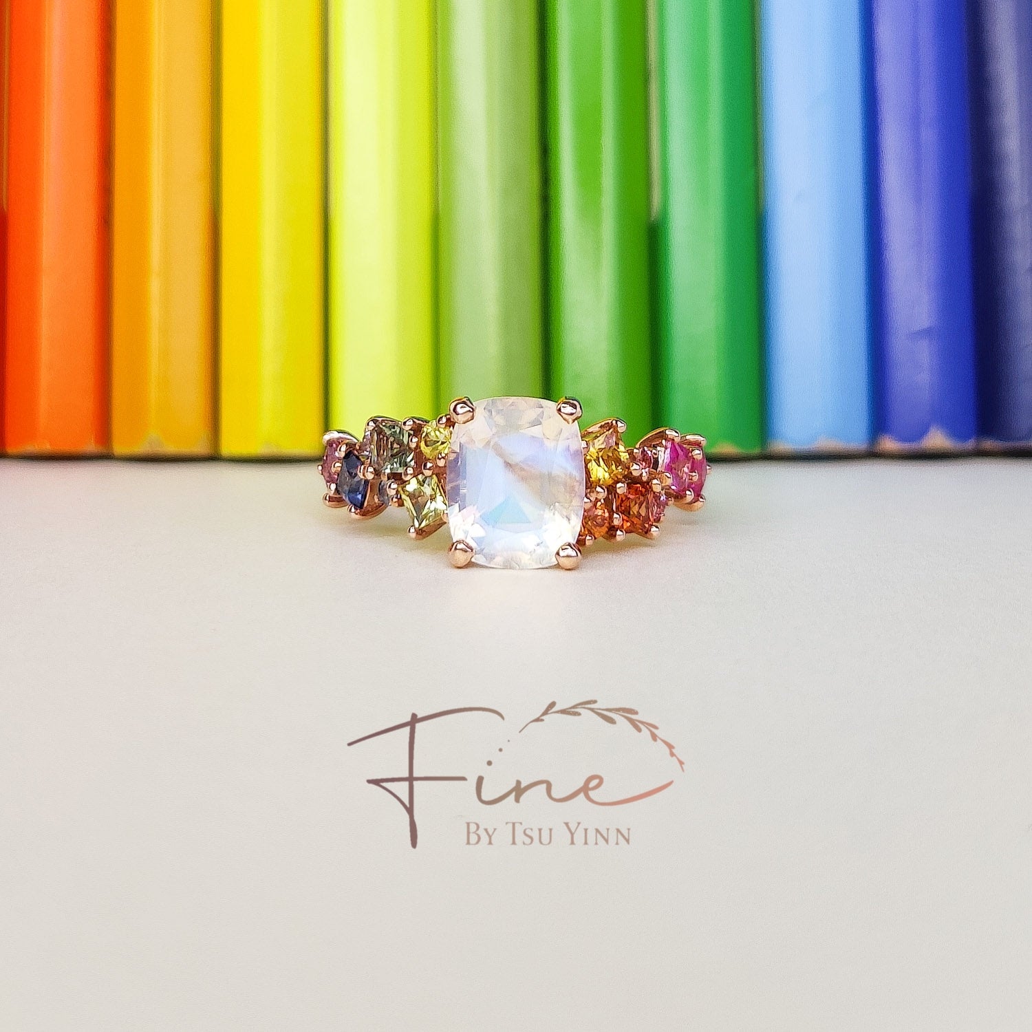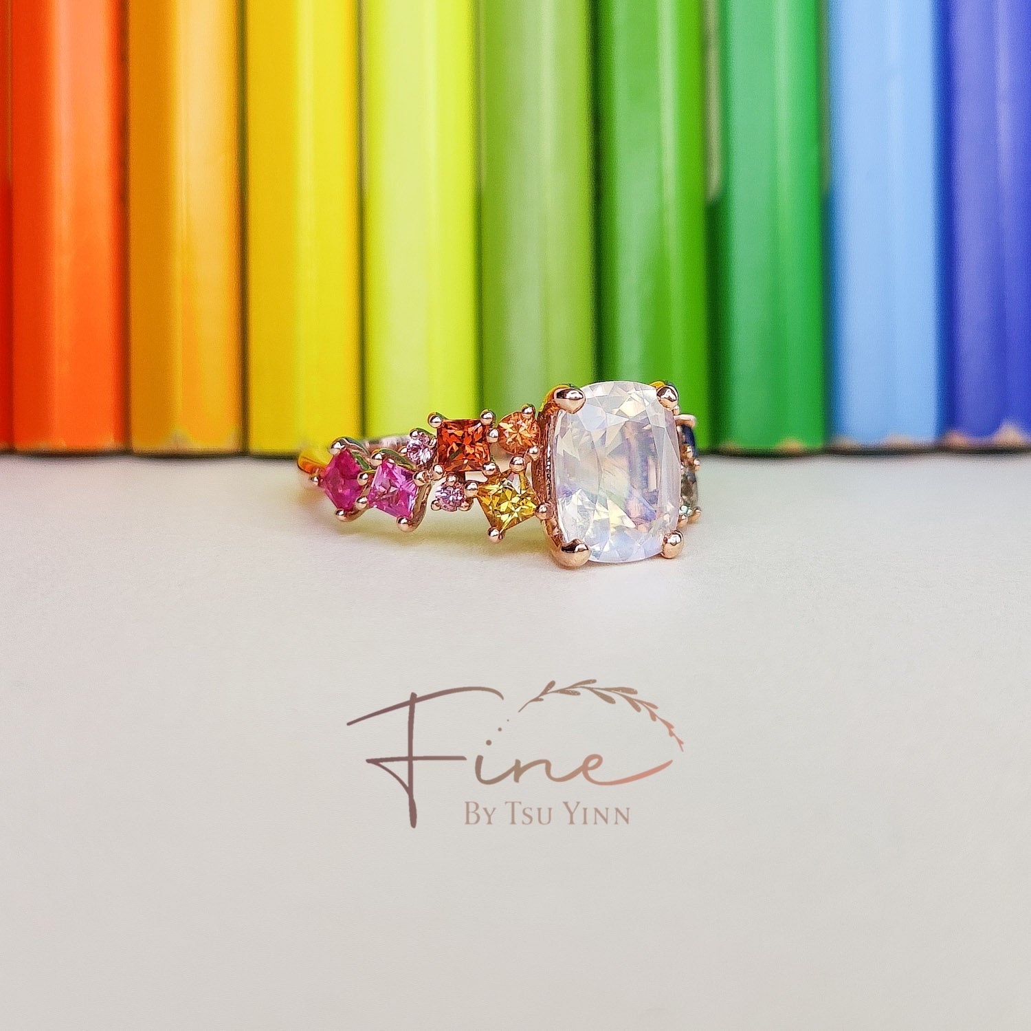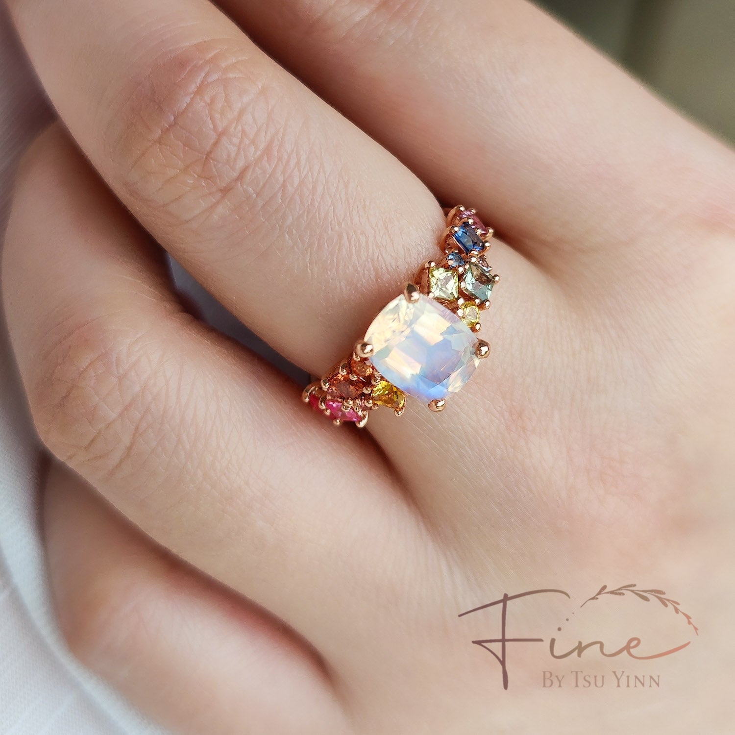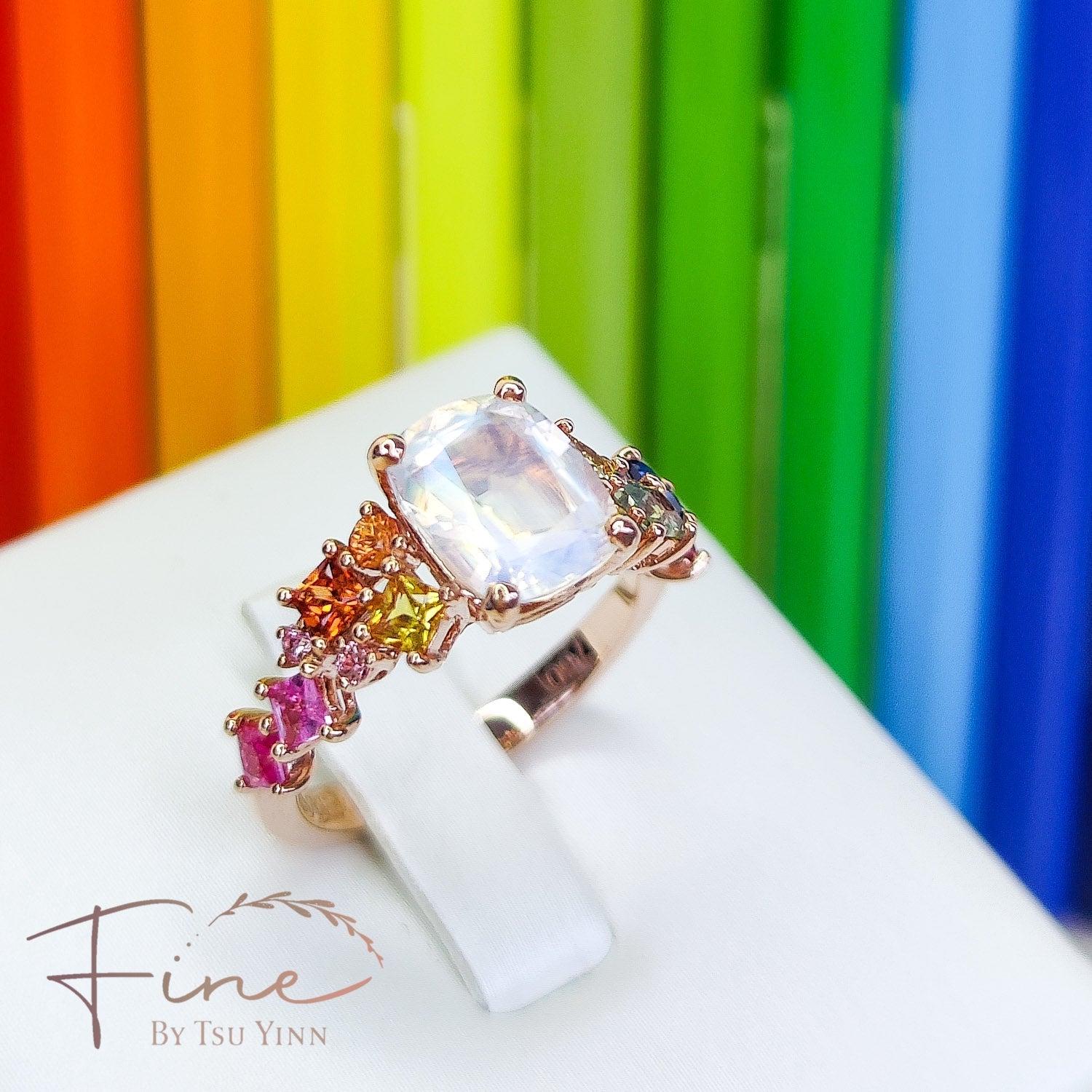 RG Faceted Moonstone Rainbow Messy Band Ring