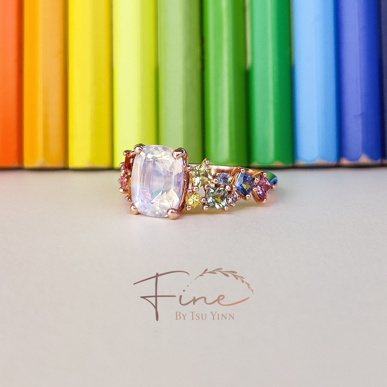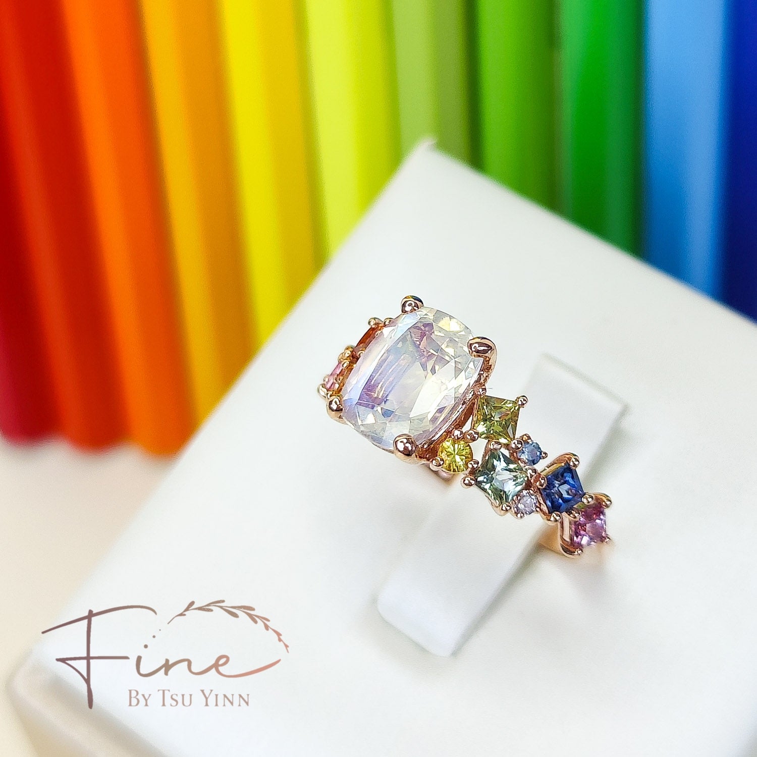 8 princess cut rainbow sapphires