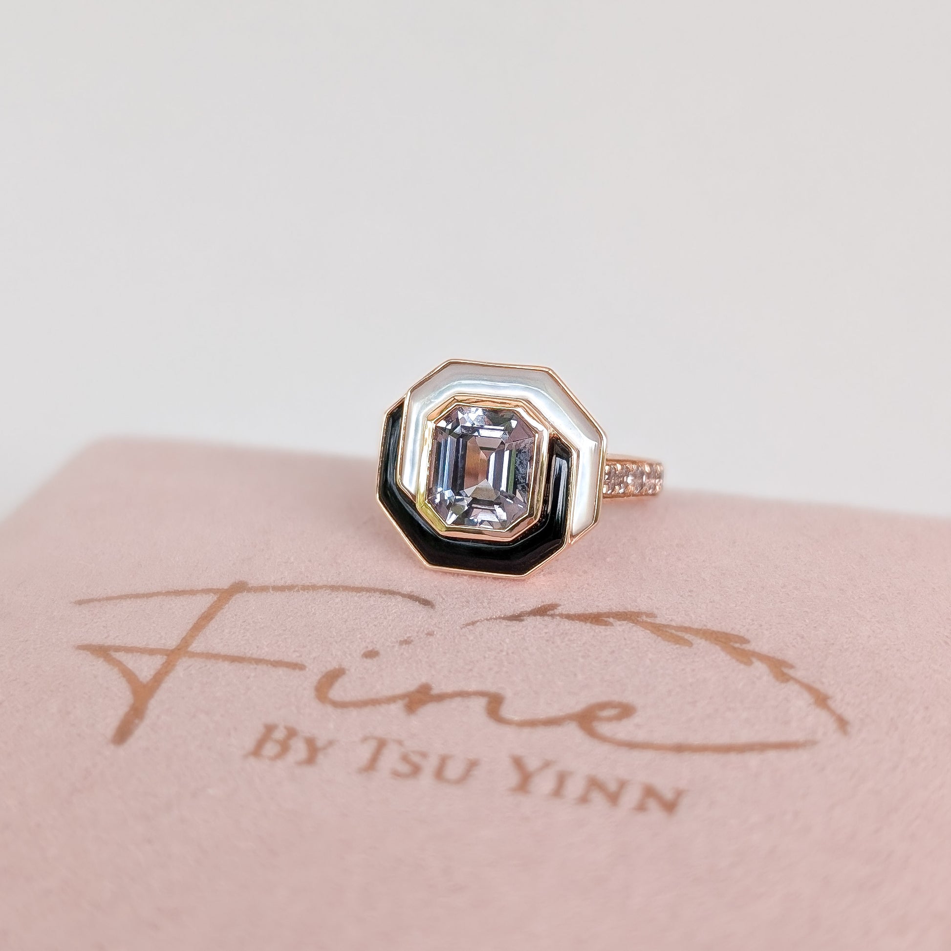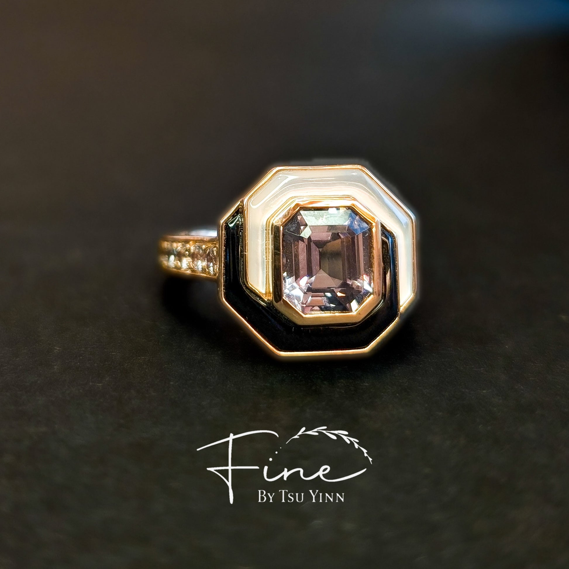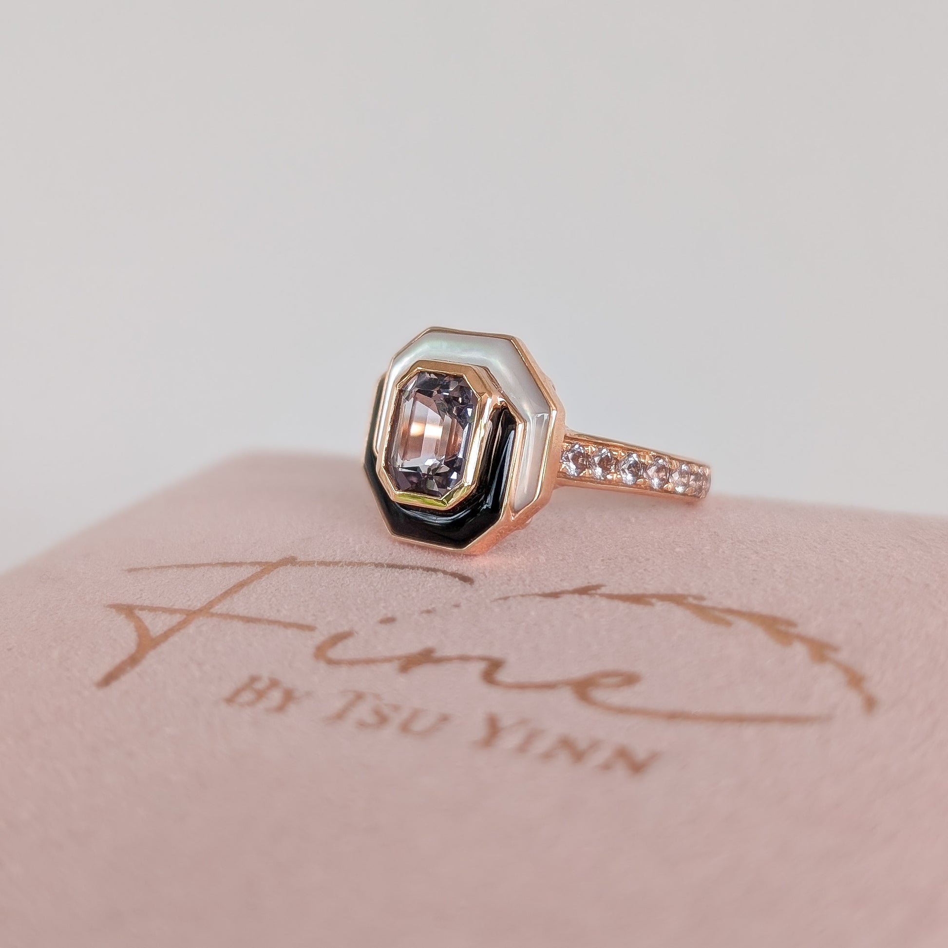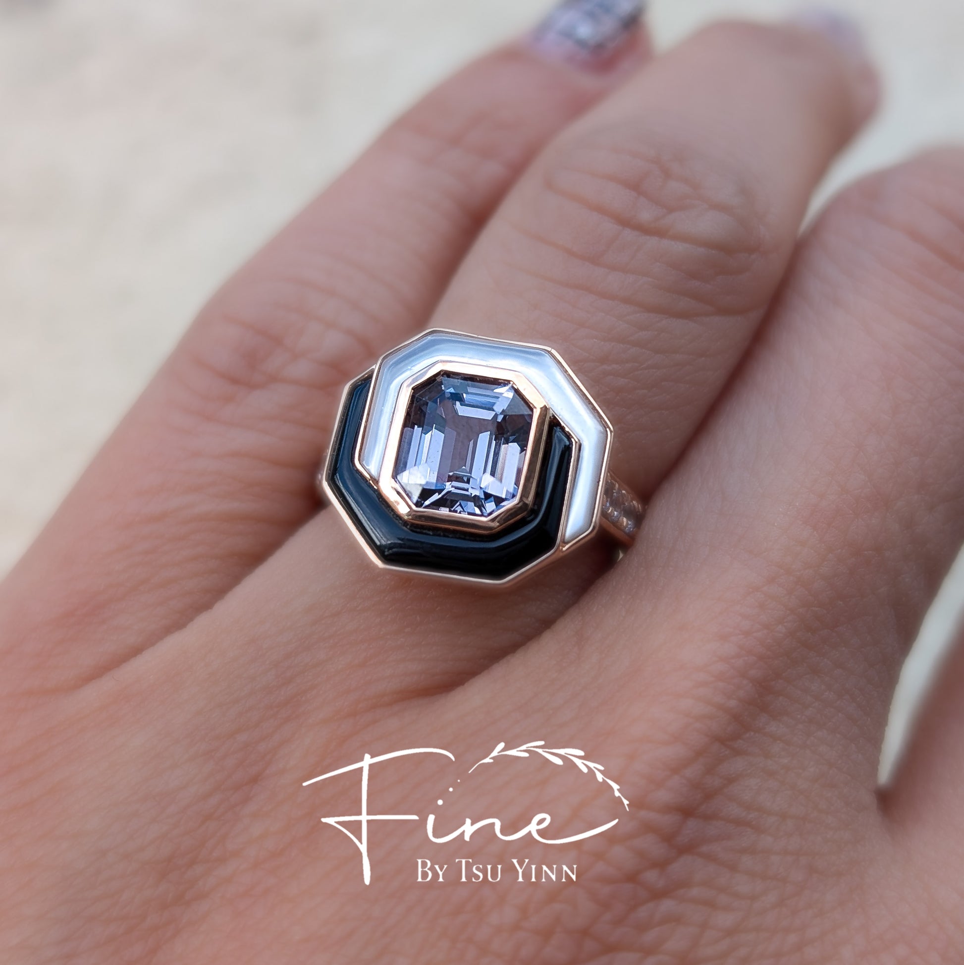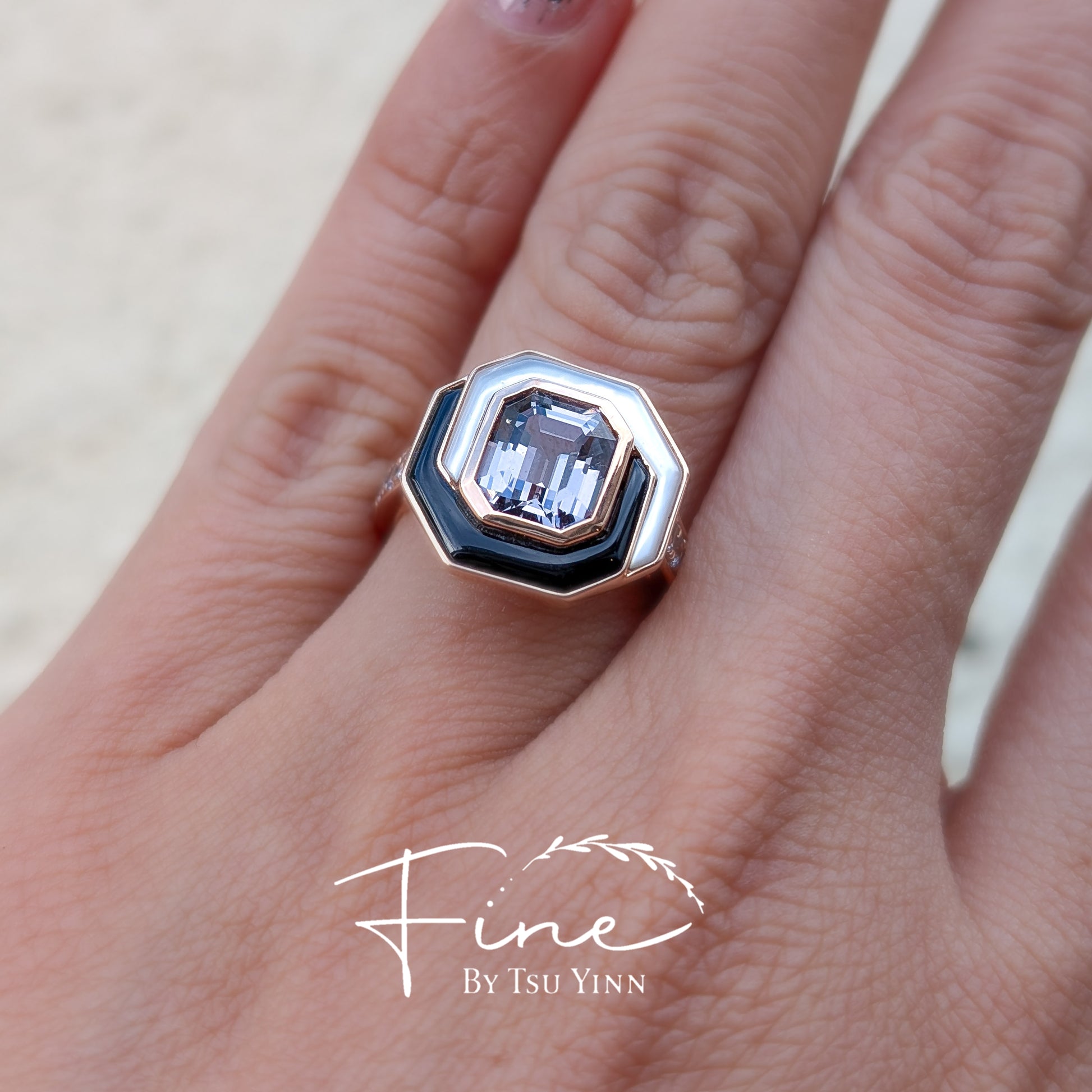RG Grey Spinel, Mother of Pearl and Black Onyx Ring