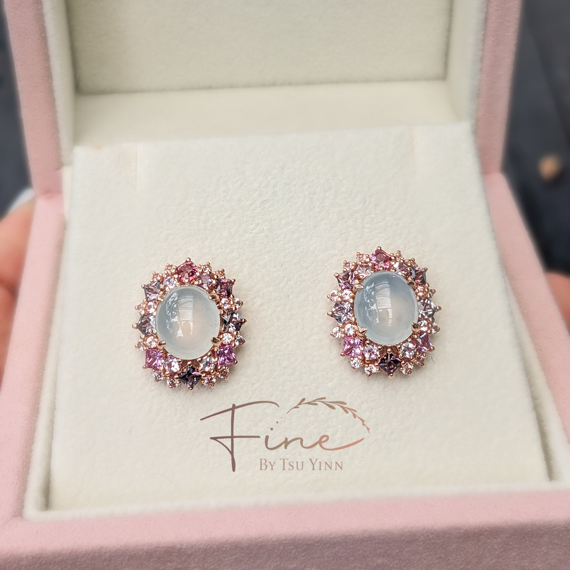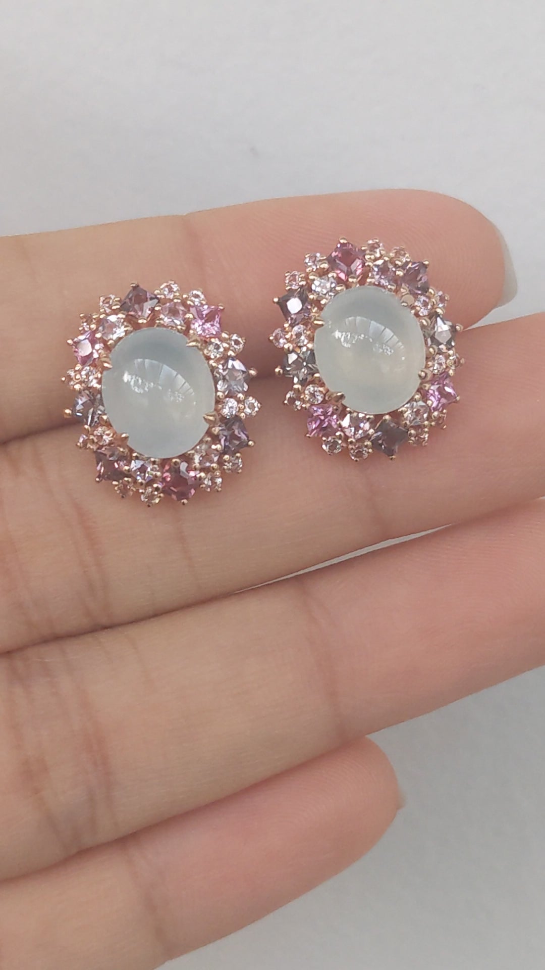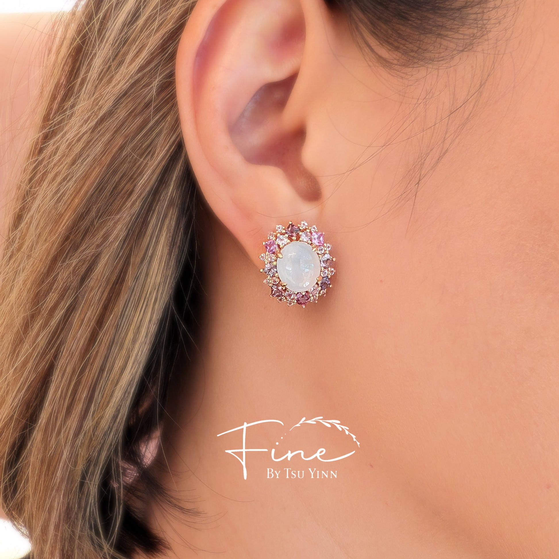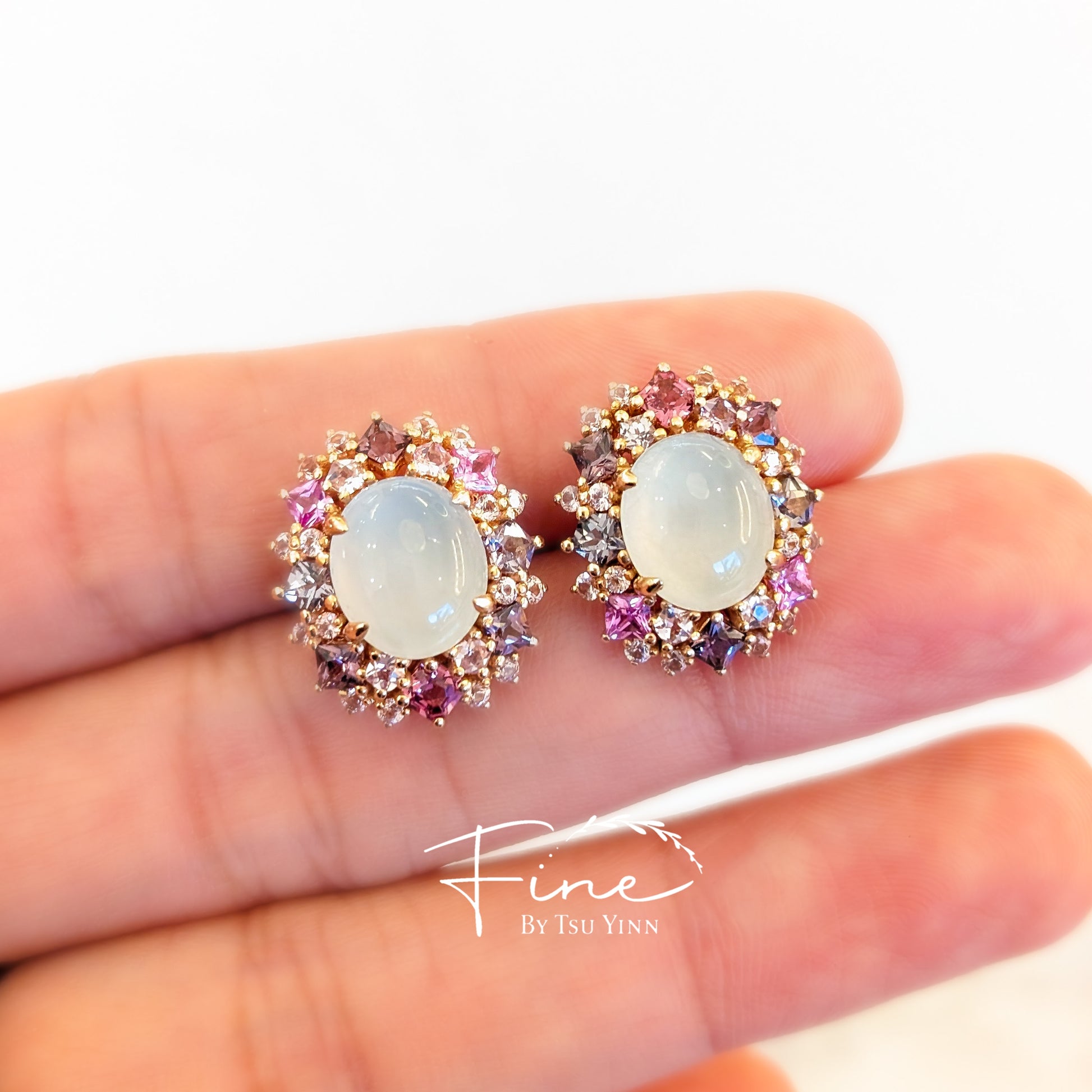 RG Icy Jadeite Double Spinel Halo Earrings