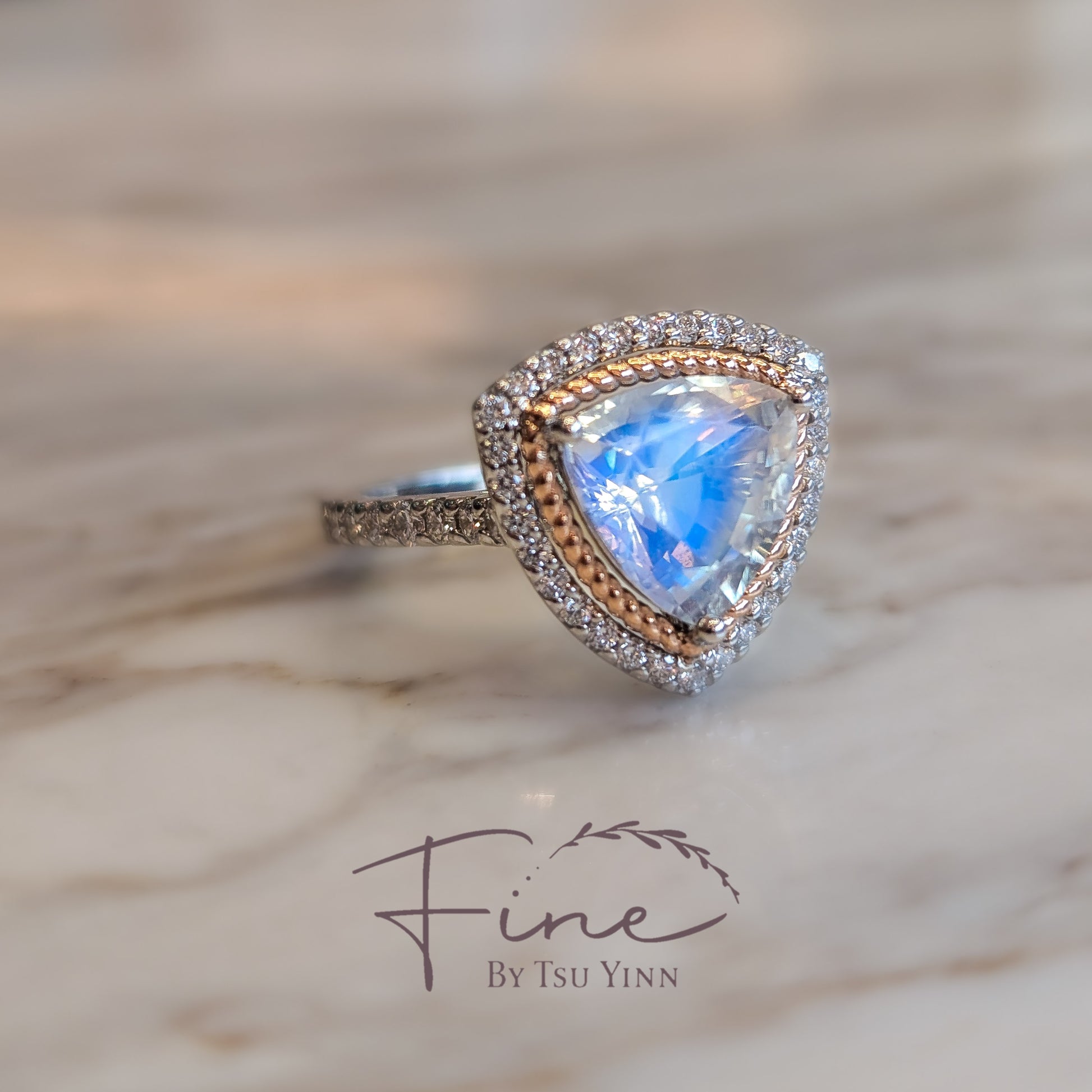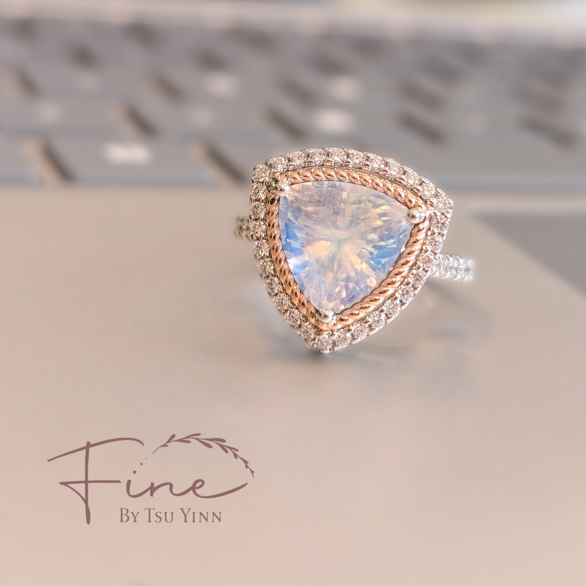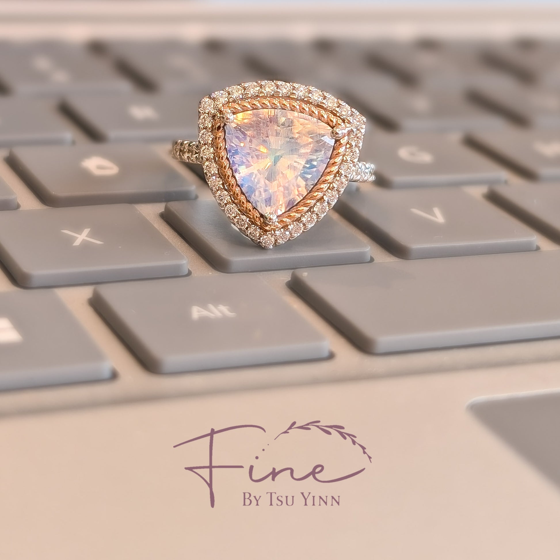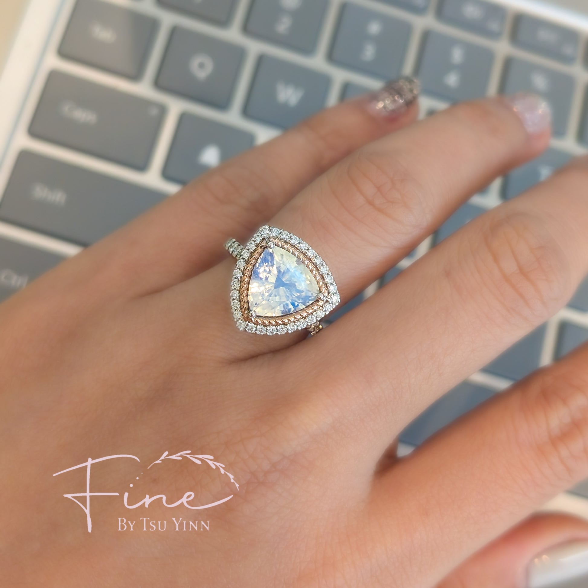 RG WG Faceted Trillion Moonstone with Twisted Rope and Diamond Halo