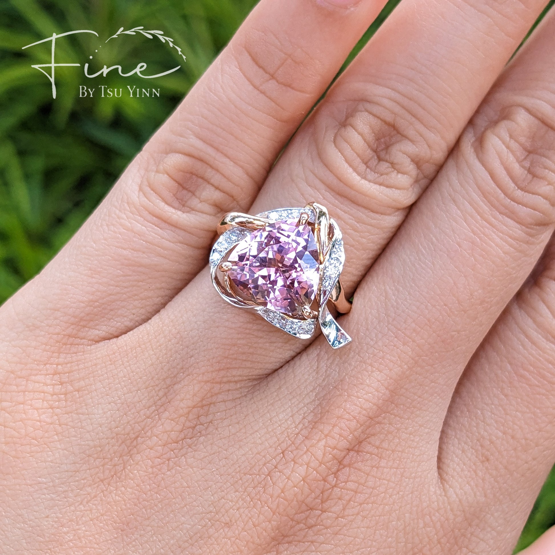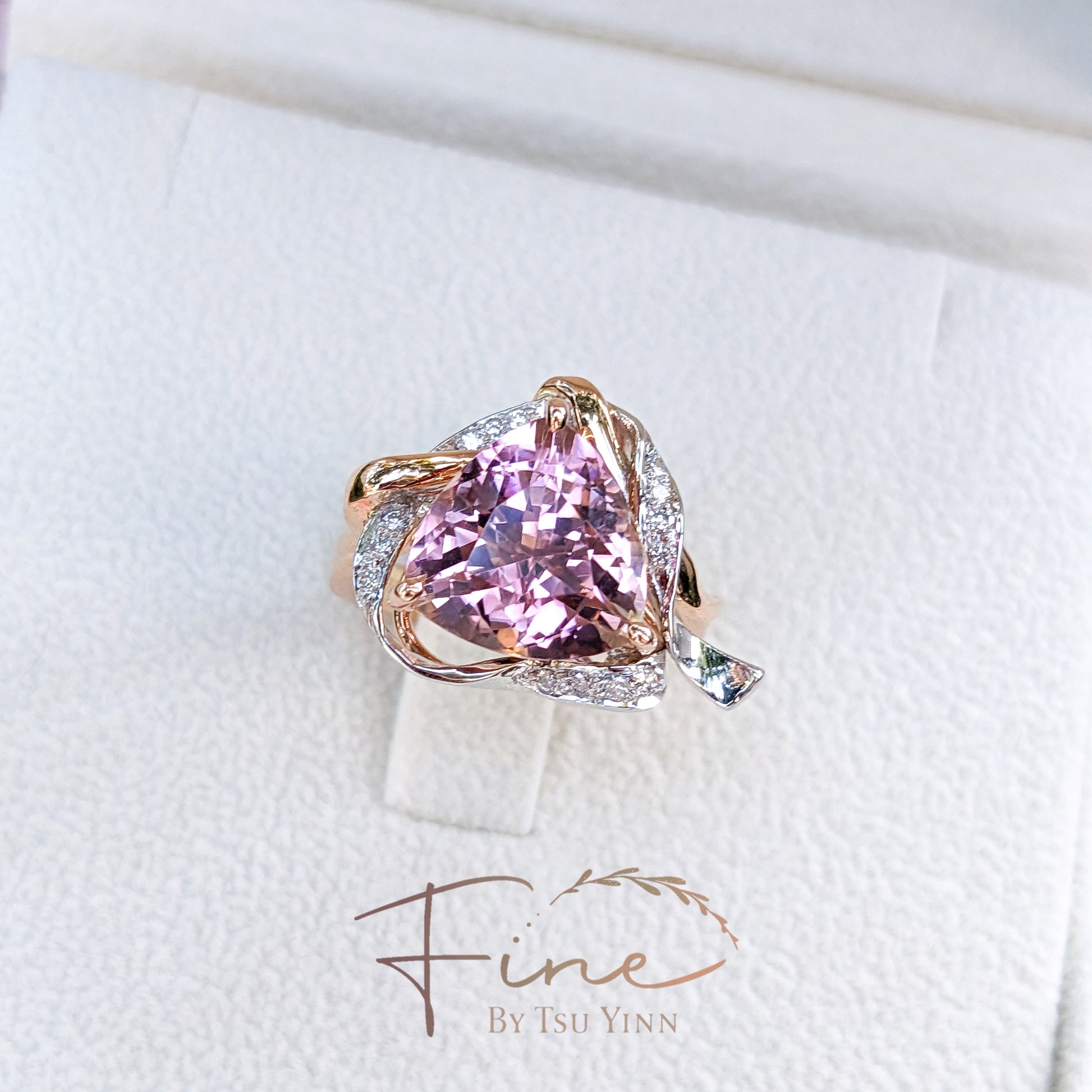 RG WG Ribbon Halo Trillion Pink Tourmaline Ring