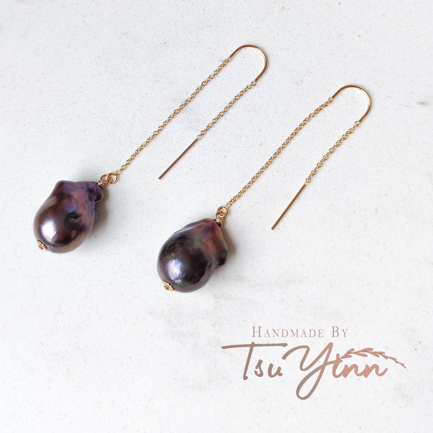 Gold-filled U-threaders Black Baroque Pearl Earrings