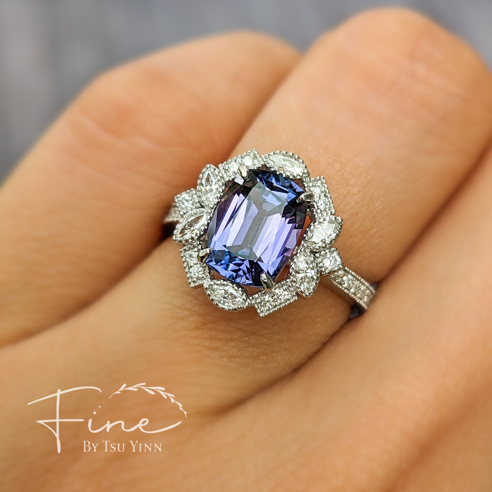 WG FBTY Camille Halo Unheated Tanzanite Ring