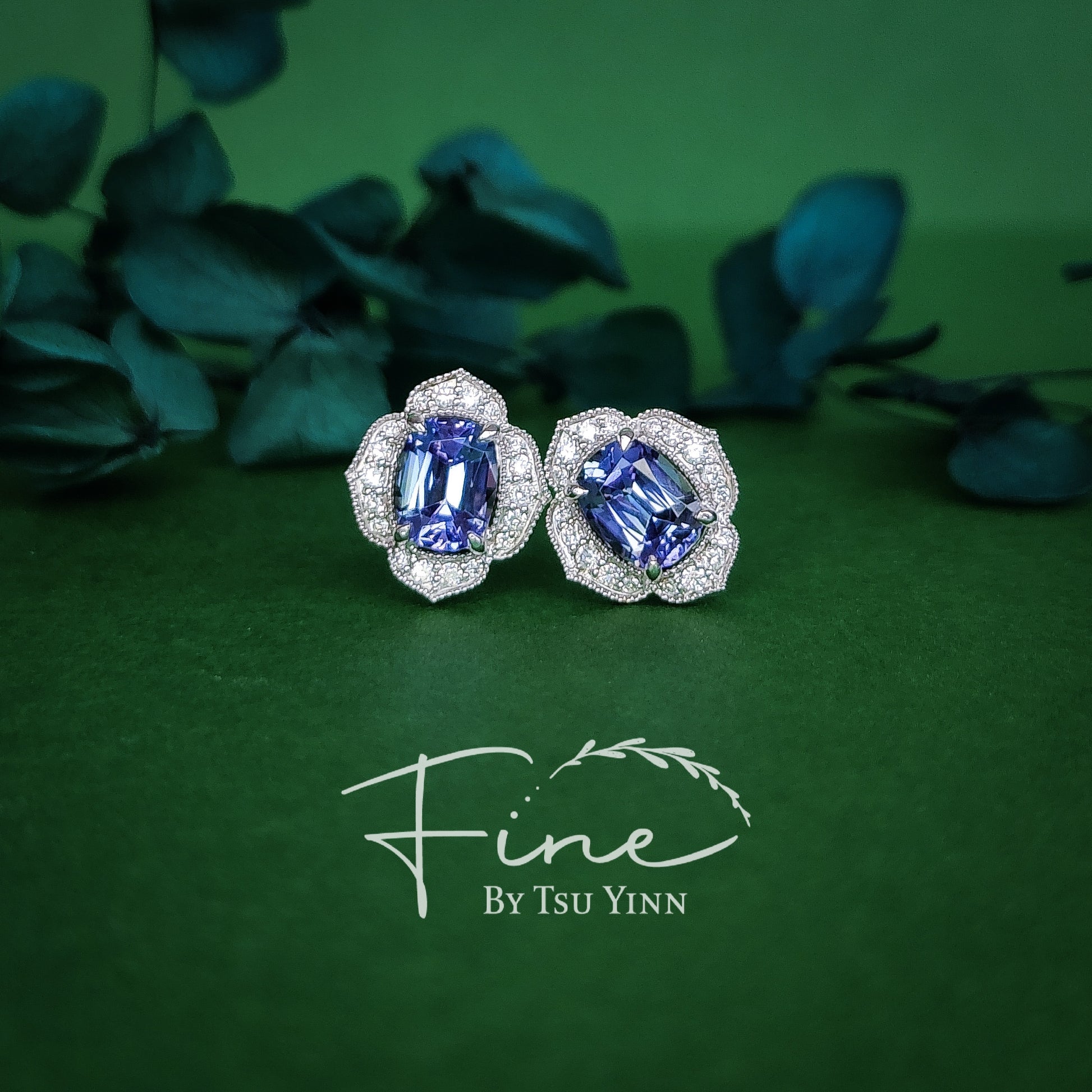 2 long cushion tanzanites 1.25/1.22 cts. GFCO certified.