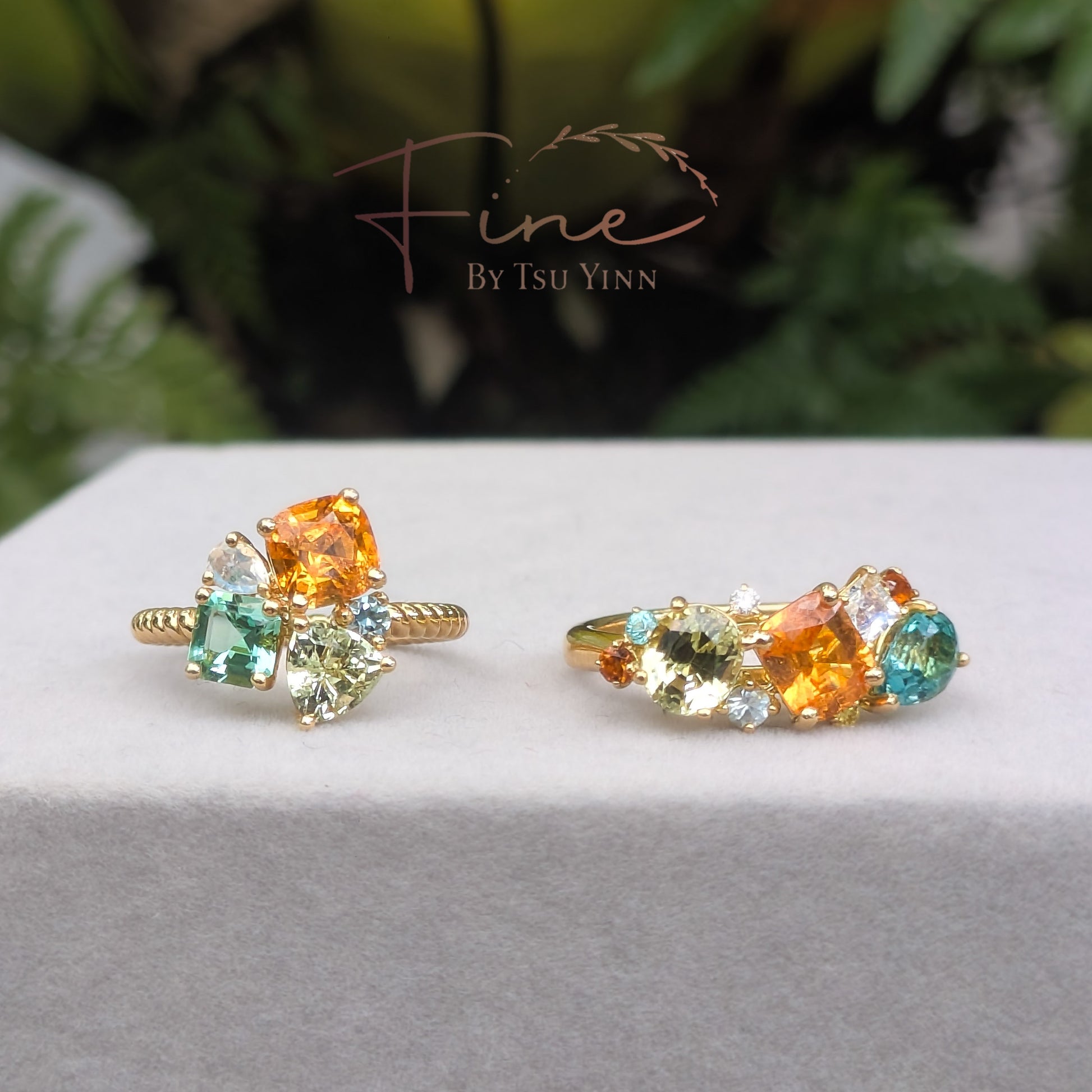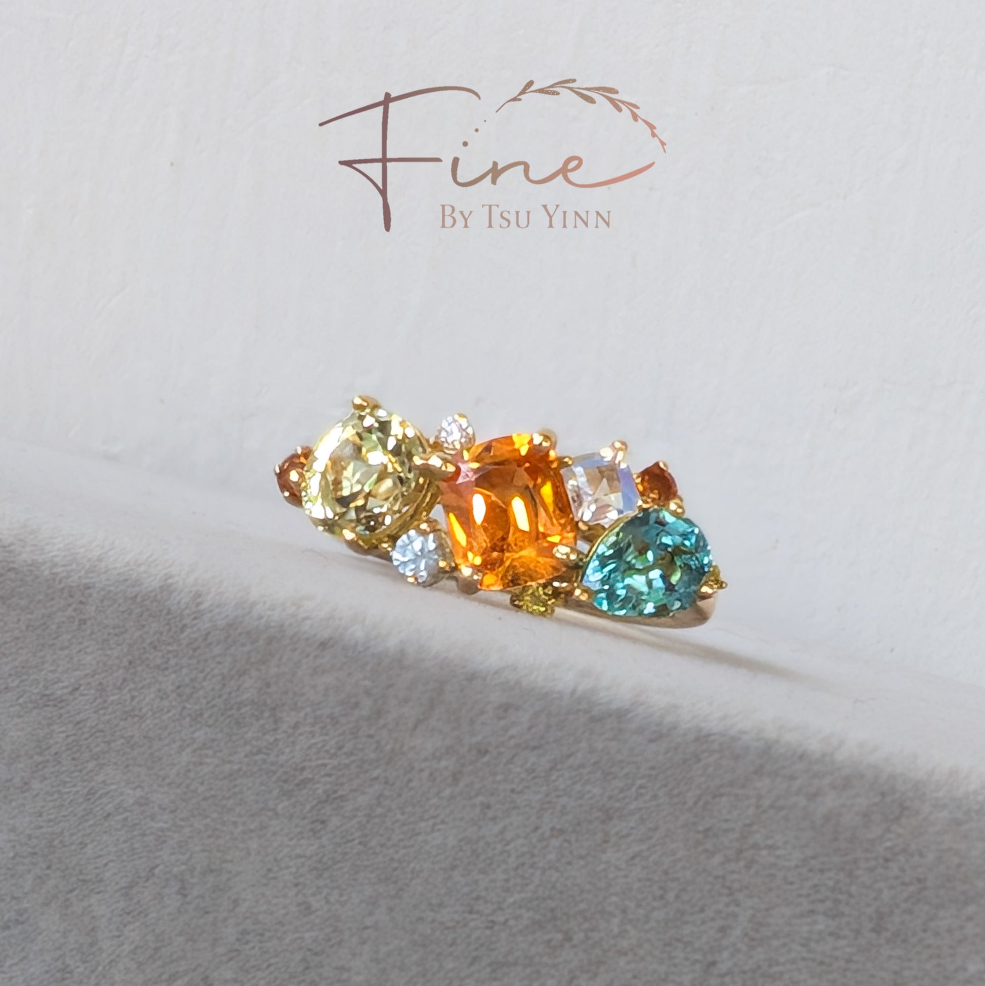 YG Messy Band with Spessartite Garnet, Chrysoberyl, Paraiba Tourmaline, Greenish-blue Tourmaline, White and Yellow Diamonds, Moonstone and Blue Zircon