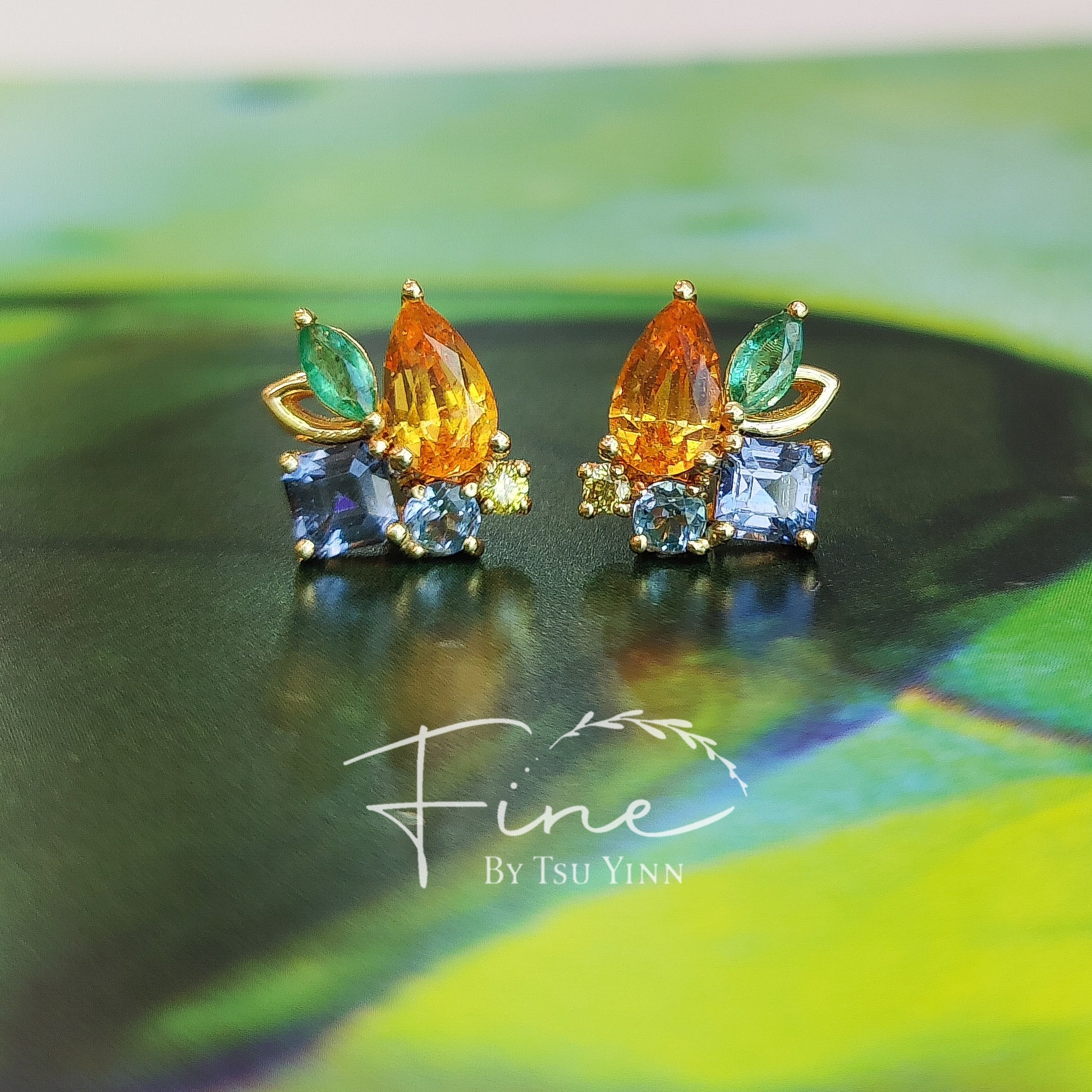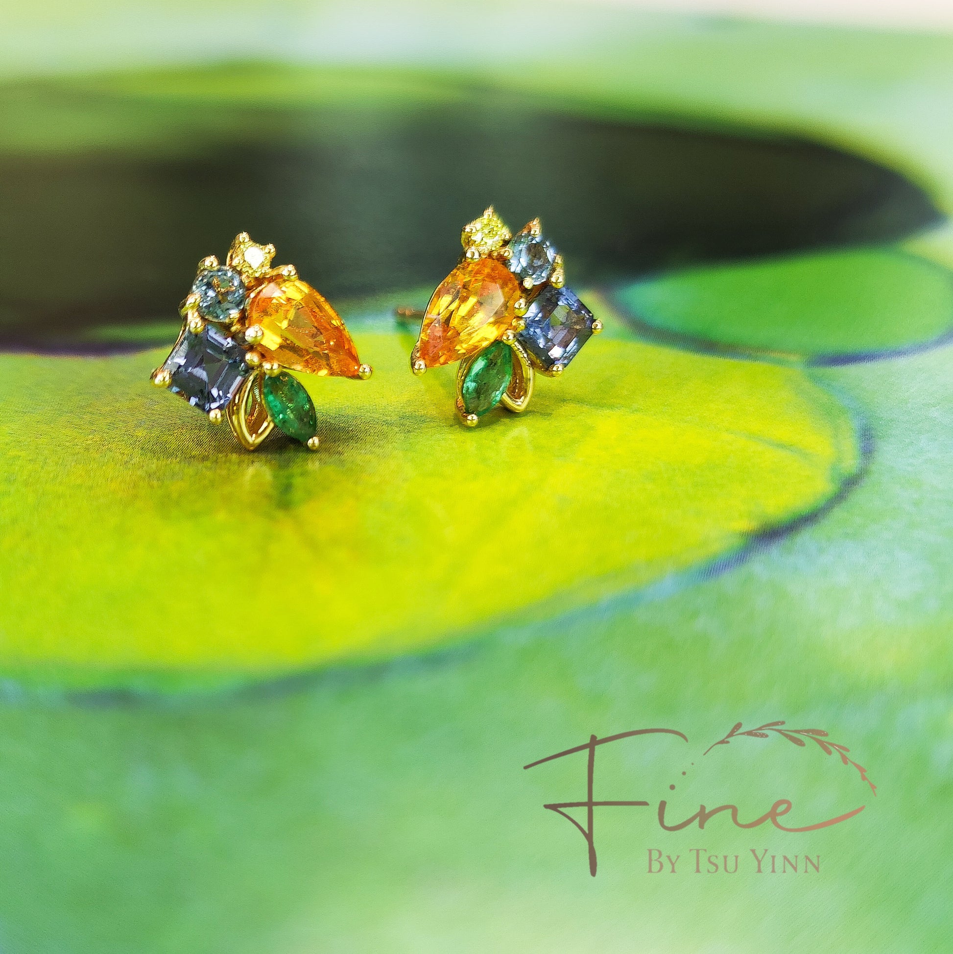 YG Spessartite Garnet, Blue Spinels, Emerald Studs